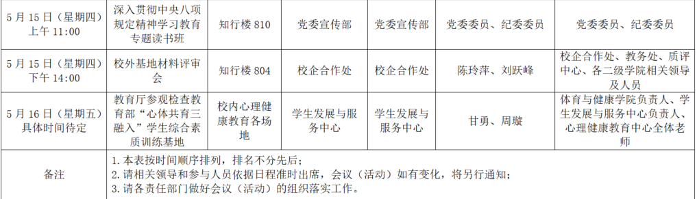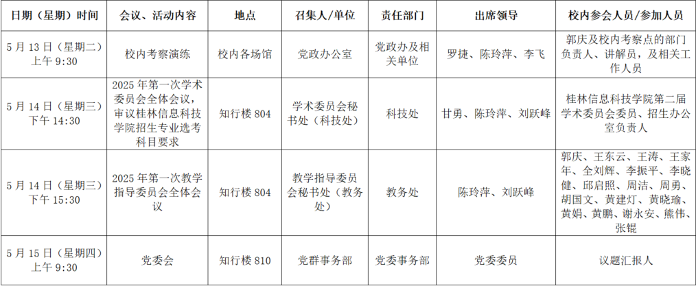 2025年春季学期第十三周全校性会议活动安排表