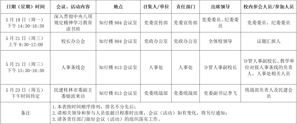 2025年春季学期第十四周全校性会议活动安排表