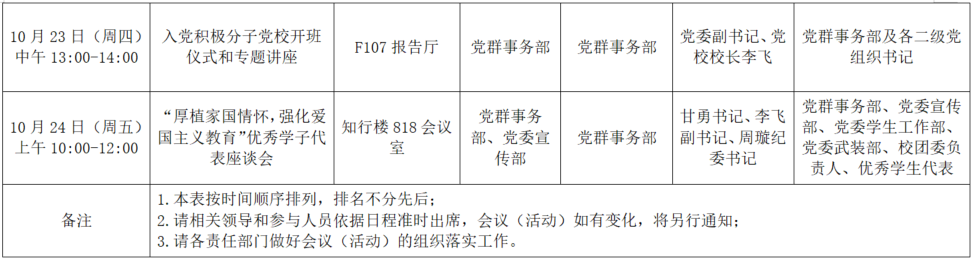 2025年秋季学期第八周(10月20日-10月24日)全校性会议活动安排表
