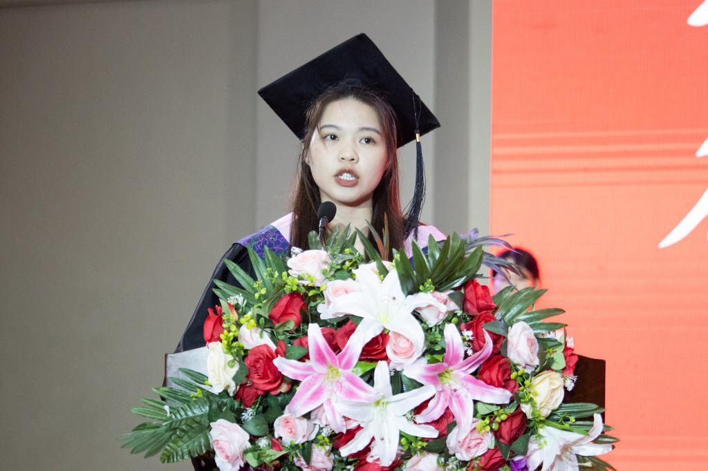 2024届专升本毕业生宁佩佩同学和2024届普升本毕业生蒋杨洋同学代表全体毕业生在毕业典礼上发言,分享了他们在信科成长历程。机电工程学院莫荣作为教师代表为即将毕业的2024届毕业生们送上了美好祝福;在毕业生献花环节,教师代表依次上台,毕业生向老师们献上倾注真挚情感的花束。