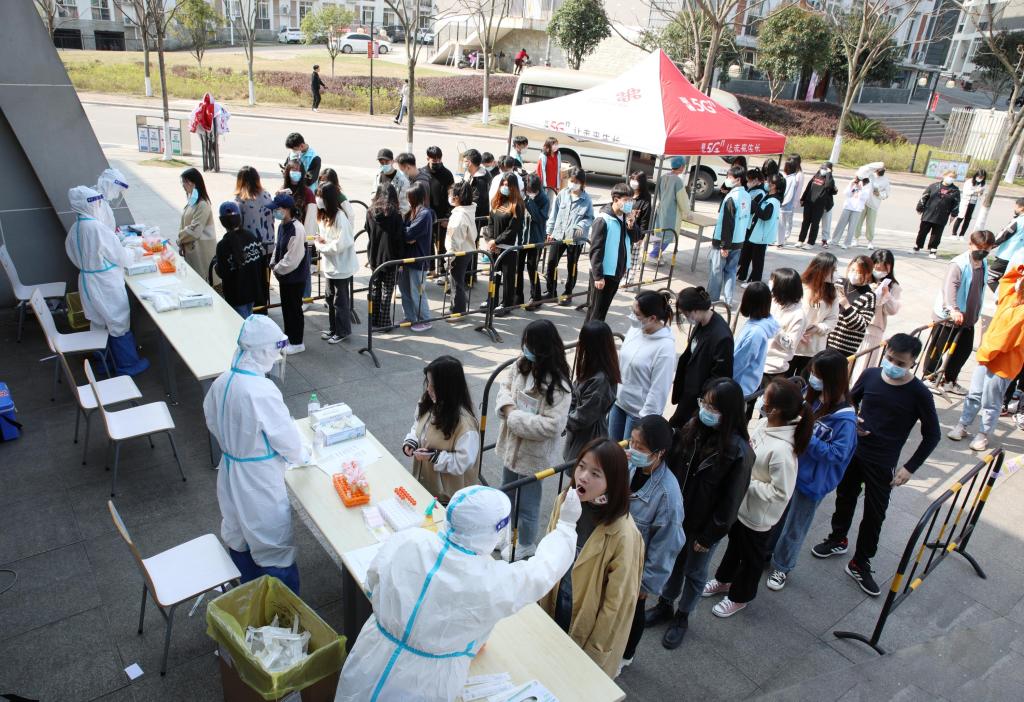 一整个上午,医护人员守护“疫”线,学工系统工作人员、保卫处人员和学生志愿者在现场协助开展信息录入、秩序维护等核酸采样志愿服务工作,全体人员积极配合、秩序井然,整个检测流程从采样到离场,组织科学、保障有力、防护到位。