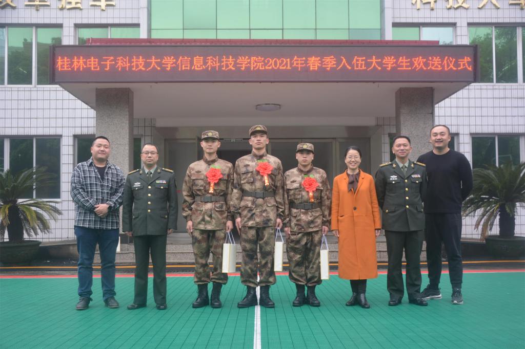 3月15日下午,学院在灵川县人民武装部举行了2021年度春季应征入伍大学生欢送会。学院副院长彭倩、灵川县人武部政委葛湘龙、灵川县人武部部长敖国旗和2021年春季入伍学生参加欢送会。会议由学院武装部部长彭鹏主持。