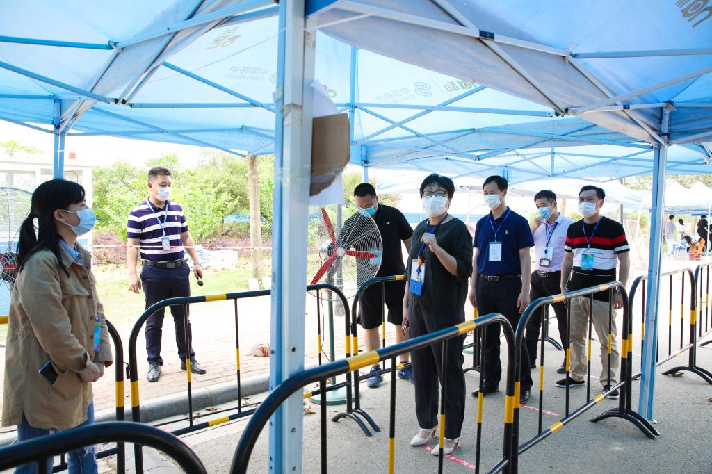 当天下午,学院副院长彭倩、陈智勇,党委副书记、纪委书记唐步洲来到校内下车点看望慰问一线工作人员,对现场相关工作流程、排班情况及相关防疫措施提出建设性意见,希望师生志愿者继续坚守一线,加强联动沟通,继续以高度负责的态度完成每一项工作,让学生和家长放心。