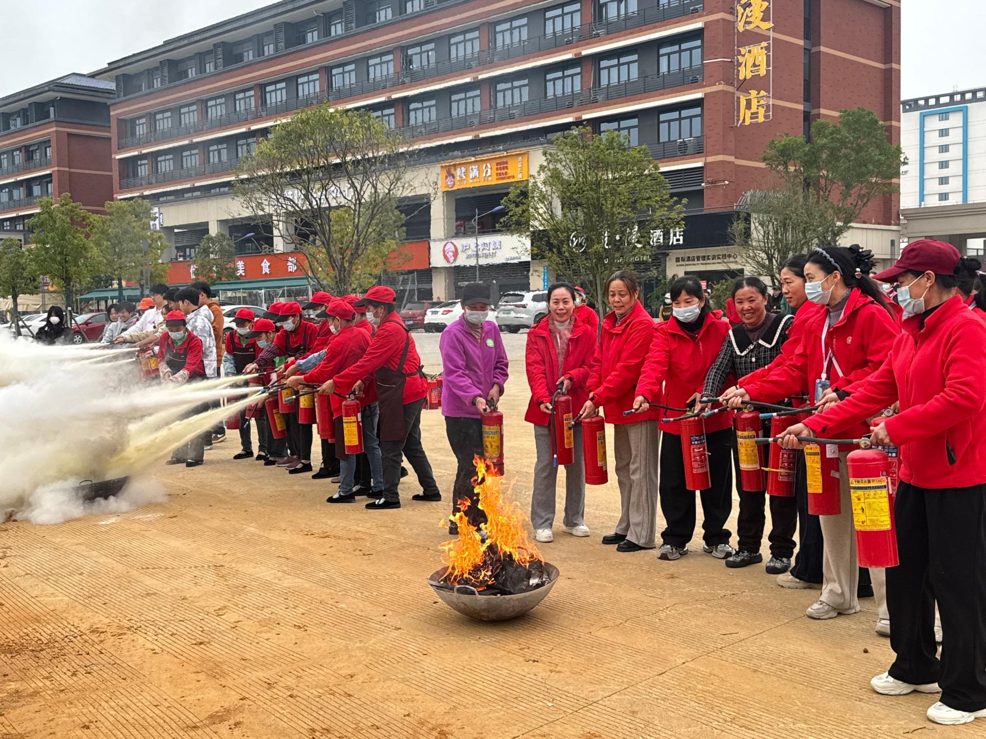 理论培训结束后,参训教职工及学生代表移步至演练场地,投入到紧张而有序的灭火实操演练中。在灭火器操作环节,消防专业人员首先详细讲解灭火器的种类、适用范围以及使用步骤,并进行现场示范。随后,参训人员依次上前亲自操作灭火器、消防栓等消防器材,按照“提、拔、握、压”的操作要领,对准模拟火源进行实操练习。通过实际操作,大家不仅熟练掌握灭火器的使用方法,还深刻体会到在火灾初期及时扑救的重要性。