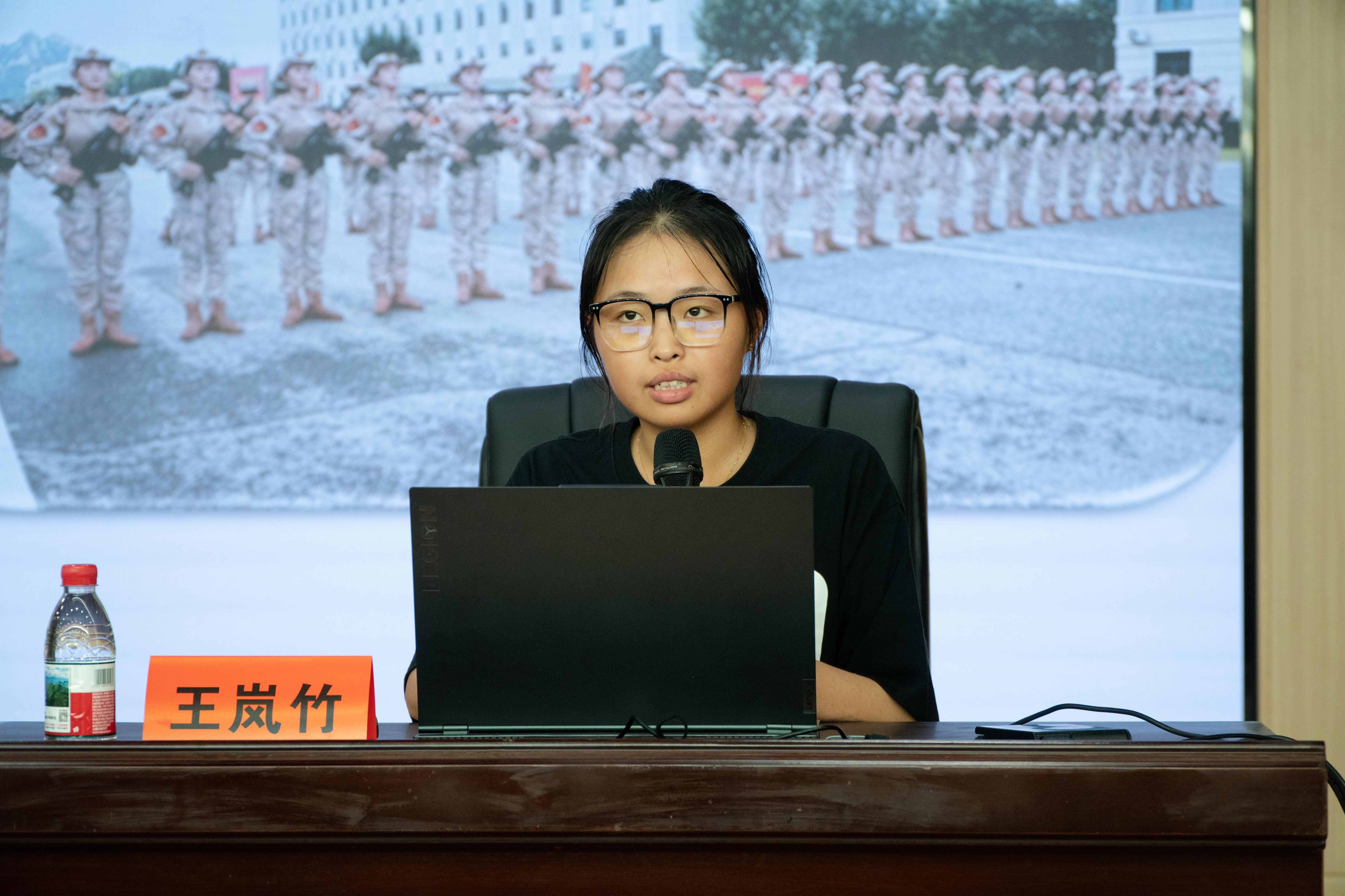 报告会上,王岚竹以“一场正步与一生的誓言——中国女民兵的阅兵之路与精神传承”为主题,与同学们分享阅兵训练的难忘历程,讲述自己腿绑3公斤沙袋、每天踢坏2-3双作战靴、三公里夜行军拉练,最终以“75厘米与128步的精准”走到天安门前的受阅故事。随后,她生动讲述中国女民兵的成长与传承,从抗战时期女性缝军衣、抬担架的贡献,到新时代女性用正步诠释爱国情怀,指出了“使命担当”这一精神内核。最后,王岚竹发出“寻找属于自己的‘长安街’”的青年号召,呼吁当代青年将个人理想融入强国征程,以奋斗践行“个人命运与国家发展同频共振”的强国誓言。