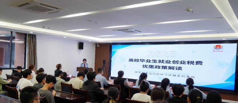 这场被誉为“职场第一堂税务课”的活动,吸引了数百名毕业生踊跃参与。税务局青年骨干陈柯屹担任主讲,用轻松活泼的语言和真实生动的案例,将抽象的税收政策转化为易懂的实用指南。本次宣讲围绕高校毕业生就业创业的核心需求,系统梳理了可享受的税费优惠政策:从就业收到第一笔薪水需要缴纳个人所得税时可扣减的各项专项附加扣除,到创业企业关注的企业所得税优惠,每一项政策都讲解得清晰透彻,既覆盖了毕业生就业阶段的常见税费减免场景,也深入创业全流程的关键环节,为毕业生的职业起步之路筑牢“政策基石”。