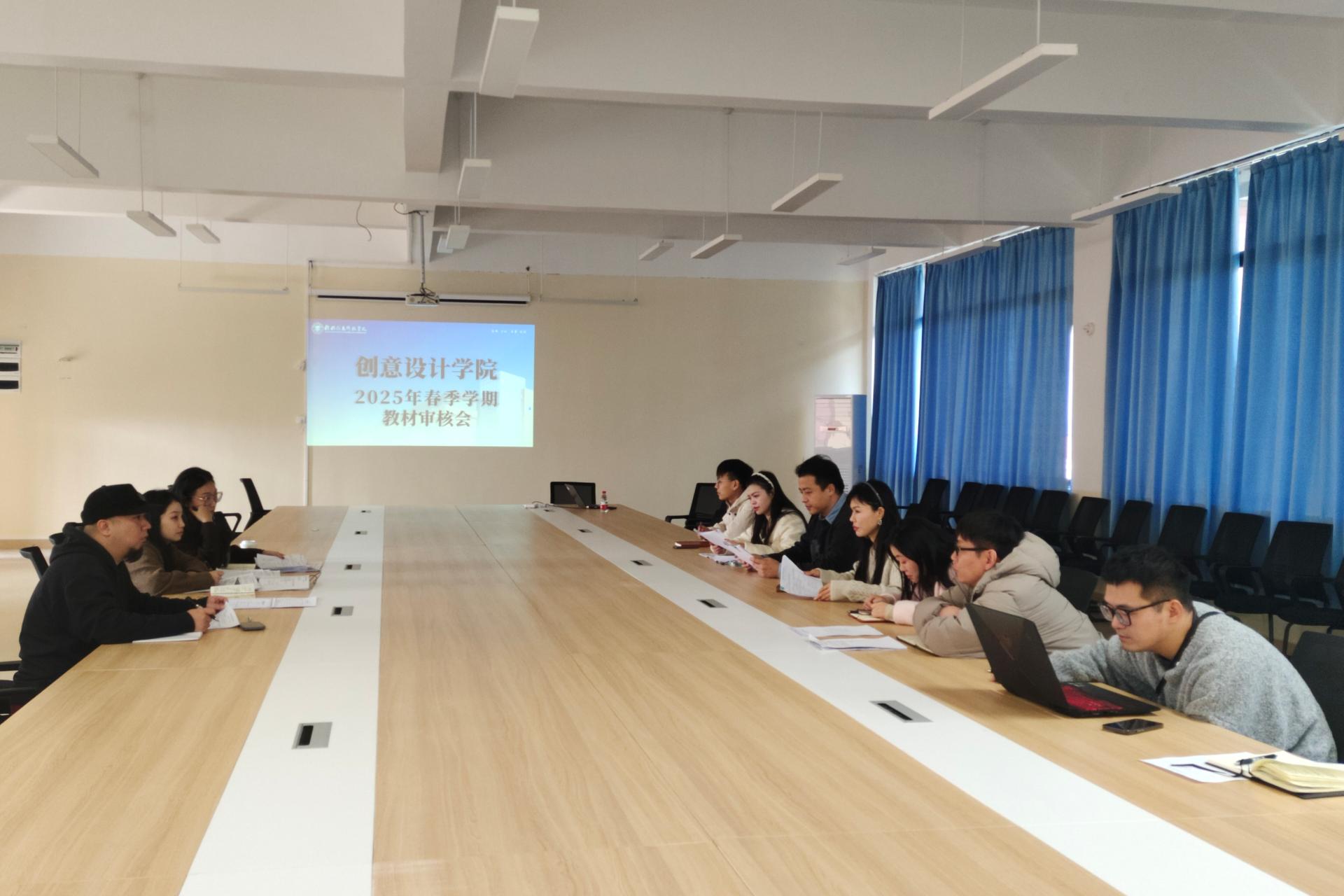 近日,创意设计学院在德远楼E316会议室组织开展了2025年春季学期教材选用审核会议。会议旨在秉持“质量为先、与时俱进、贴合实际”的原则,对学院2024-2025学年第二学期开始的所有课程所拟定选用教材进行审核。