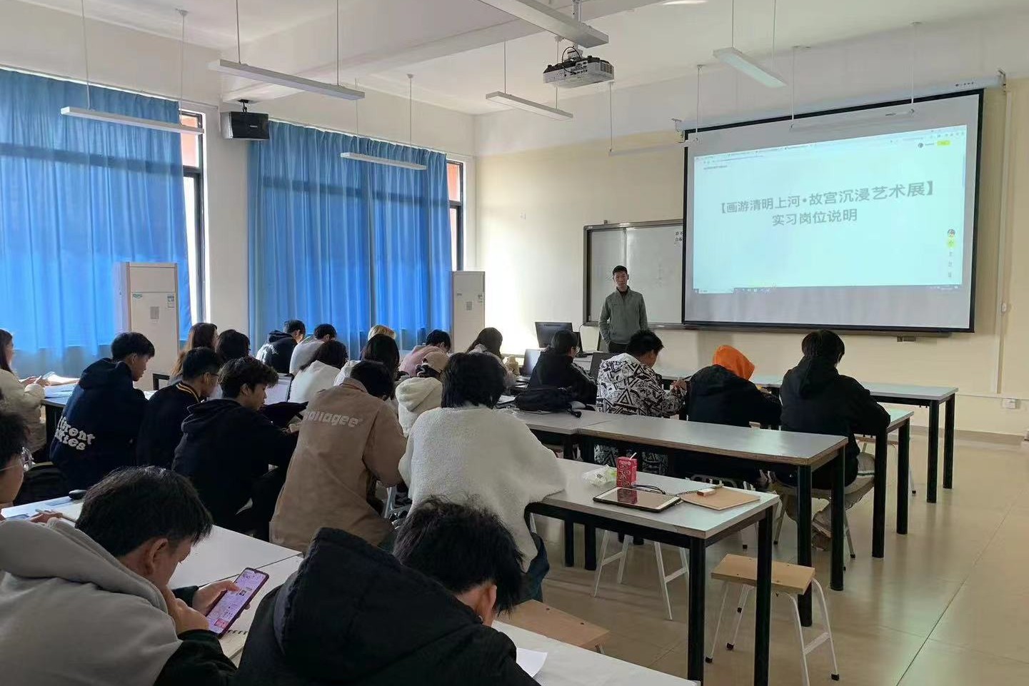 近日,深圳徐来科技传媒文化传播有限公司莅临我院,于创意设计学院E401教室隆重举办了一场招聘宣讲会。本次宣讲会汇聚了2021级动画专业的学生,旨在深化我院师生对深圳徐来科技传媒文化传播有限公司的全面了解,并深入剖析公司近期推出的《画游清明上河-故宫沉浸艺术展》项目。此举不仅为即将踏入社会的大三学生提供了优质的实习机会,同时也为企业选拔优秀人才搭建了一个高效的平台。