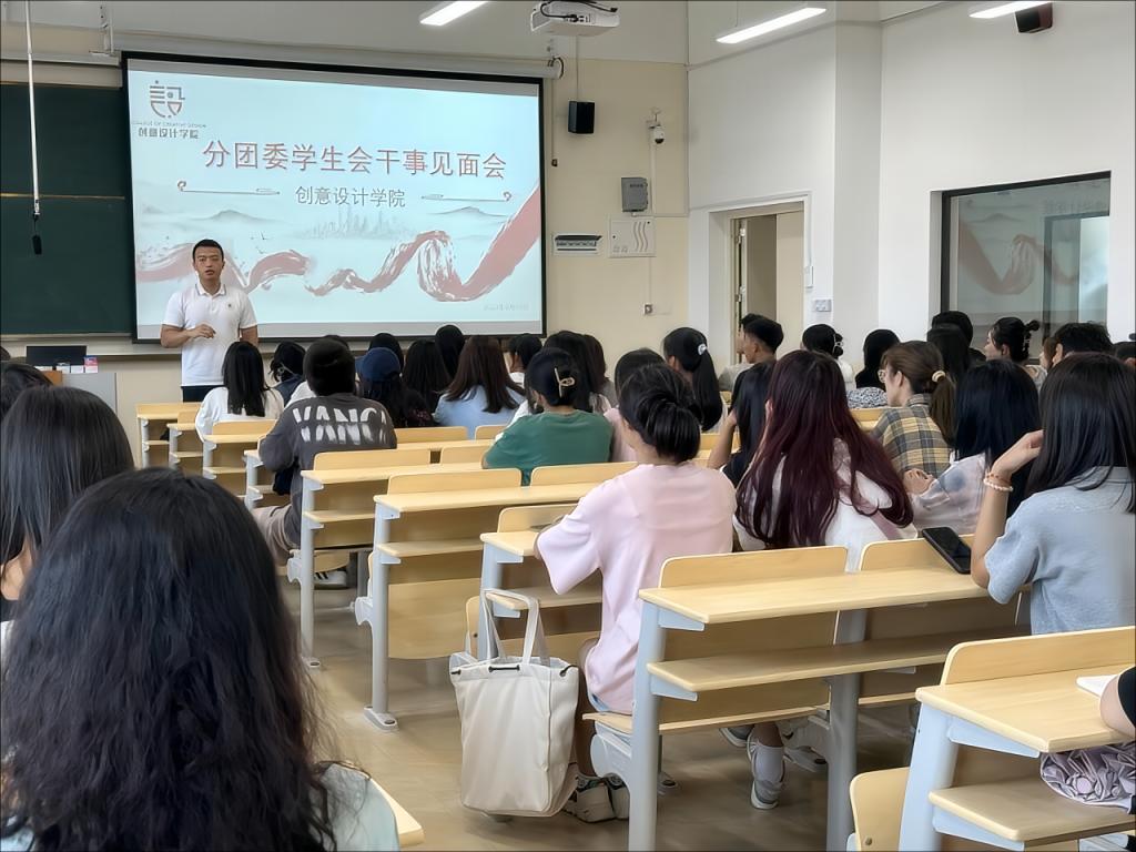 会上,刘思老师对上一届分团委、学生会的工作进行了总结,并对新一届成员提出了期望和要求。接着,学生会主席介绍了本学年的主要工作计划与活动安排,包括校园文化建设、学生自我管理、志愿服务等方面的内容。最后,范老师强调,学生干部作为学院学生工作的重要力量,各位新成员应秉持责任心和使命感,以饱满的热情投入到各项工作中。