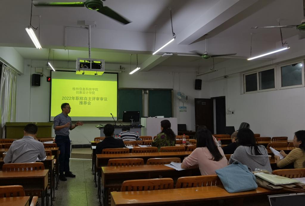 根据学校职称工作安排,创意设计学院于2022年11月8日--11月10日分别召开了创意设计学院2022高级、中级职称自主评审审议推荐会。桂林电子科技大学教授叶德辉、创意设计学院院长黄晓瑜等七位专家作为职称审核审议推荐小组成员,对我院申报职称人员的材料进行审议。