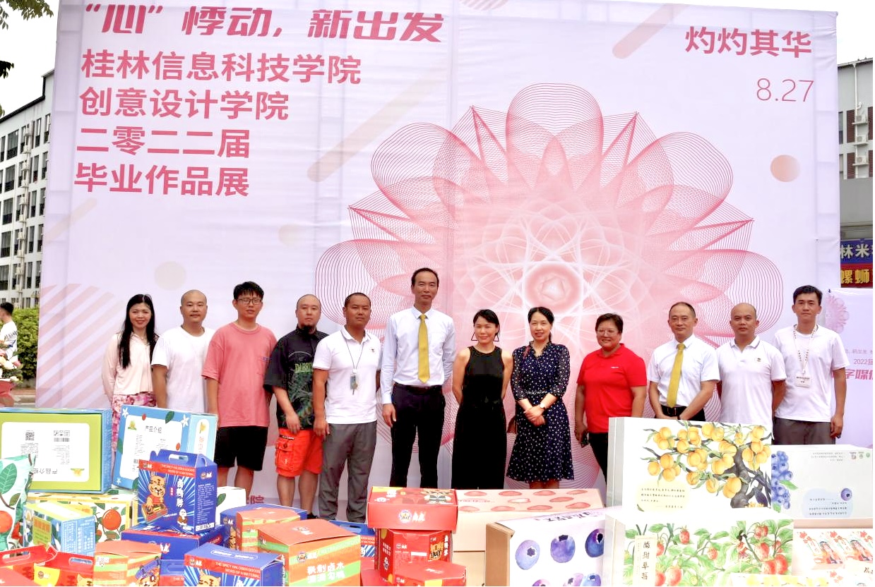 学校领导、专业老师及同学们,一同欣赏了本次毕业作品展,参展作品受到了一致好评。展览作品涵盖产品设计、视觉传达设计、动画、环境设计、数字媒体艺术5个专业,作品包含海报设计、IP文创设计、包装设计、室内设计、园林景观设计、数字媒体、家居用品、插画设计等设计类别,涉及乡村振兴、旅游推广、传统文化、行业热点等内容。