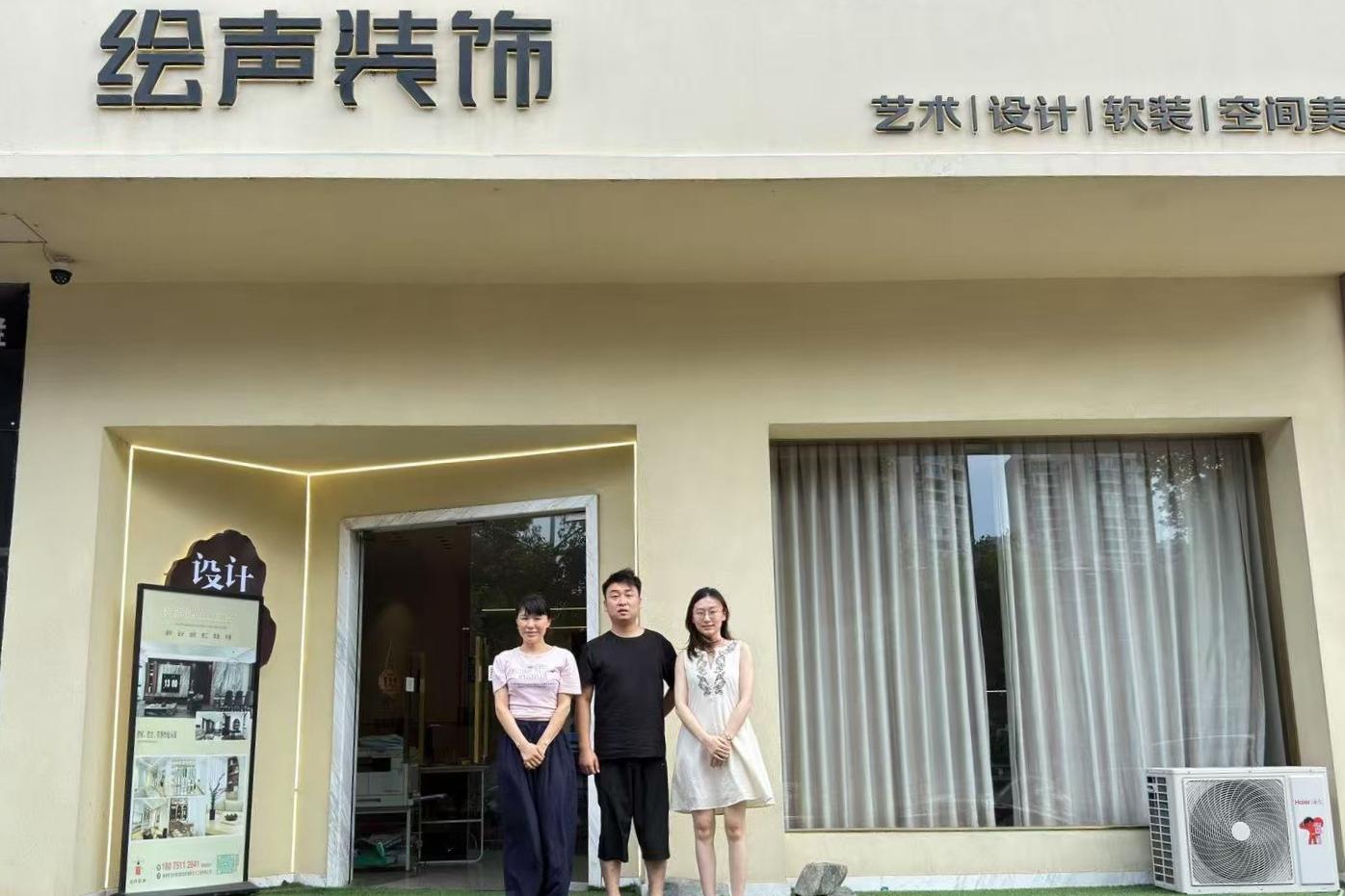 在湖南绘声装饰负责人饶港的陪同下,黄晓瑜院长一行参观了企业设计中心,详细了解企业在装饰陈设、智慧家居等领域的创新实践与技术应用,现场观摩AI辅助设计应用。