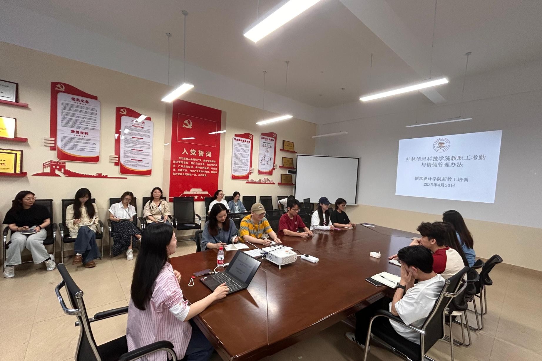 2025年4月30日,创意设计学院举办新教工的学校制度培训,旨在使各位新老师能更好更快地融入学校生活,适应教师角色。本次培训由学院院长助理田婧老师主讲,学院40位新老师参与。