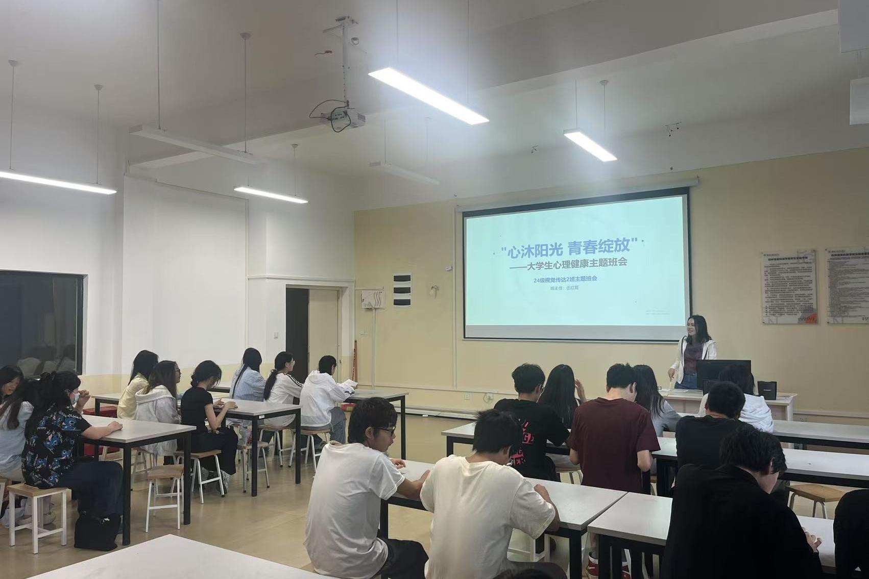 为引导学生建立心理健康机制,科学应对学业压力与成长困惑,4月24日,2024级视觉传达设计2班在德远楼E414教室开展心理健康主题班会。本次班会由班主任兼学业导师伍红霞老师主持,通过心理疏导、方法指导与资源支持为同学们筑起心灵“防护网”。