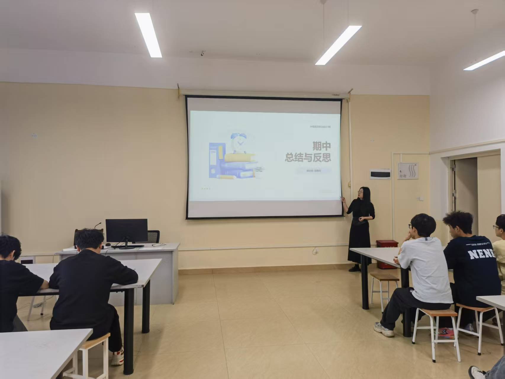 班会上,阳单丹老师首先展示了详细分析结果。数据表明,同学们大部分课程整体表现良好。针对期中总结中反映出的问题,阳单丹老师提出了多项后续跟进建议。在自我反思与目标设定方面,引导学生回顾学习情况,设定新目标,调整学习方法,提高学习效率。