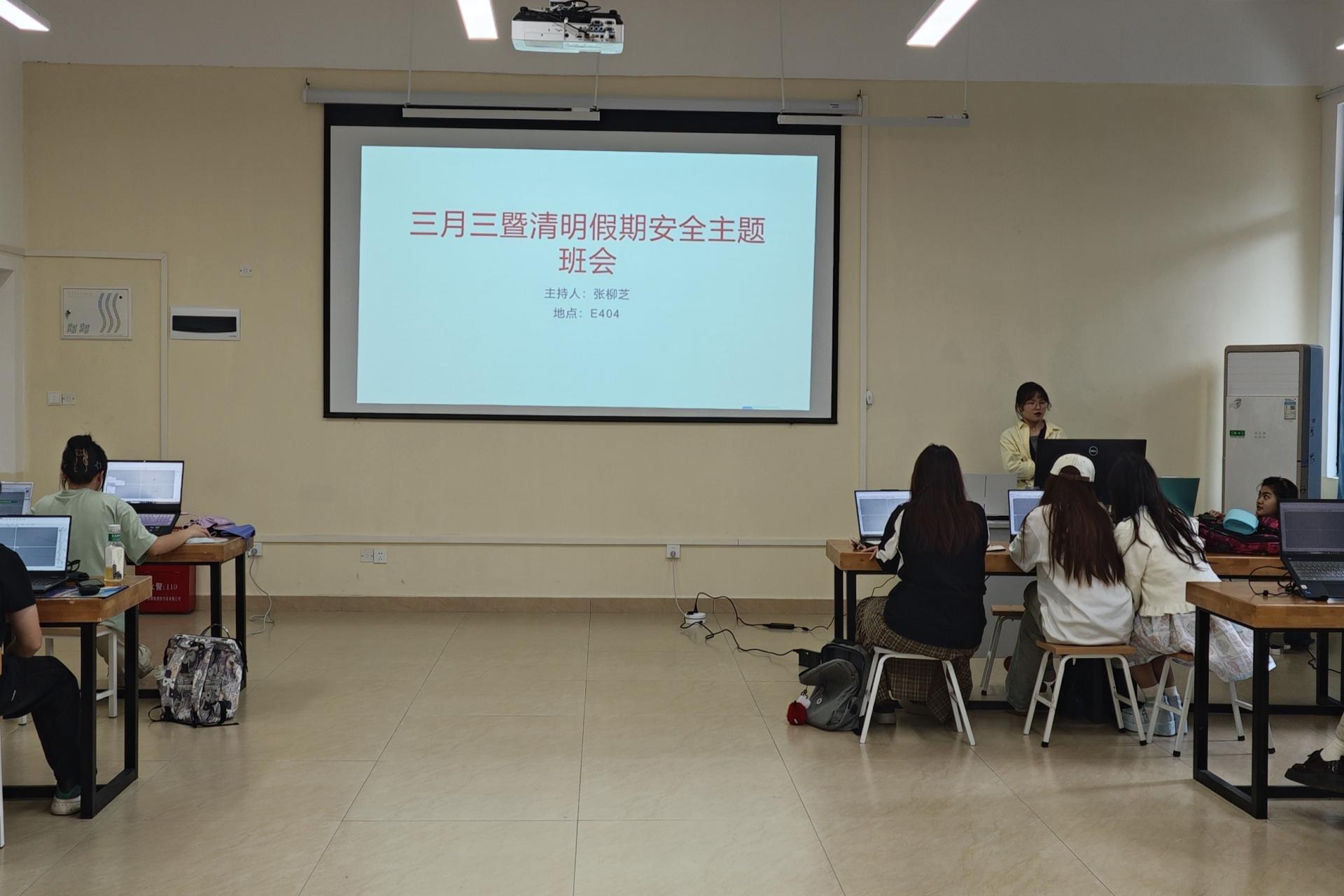 为提高学生安全意识,3月26日创意设计学院2024级产品设计2班在德远楼E404开展“‘三月三’暨清明假期安全”主题班会。班会由班主任张柳芝老师主持,全班同学参与。