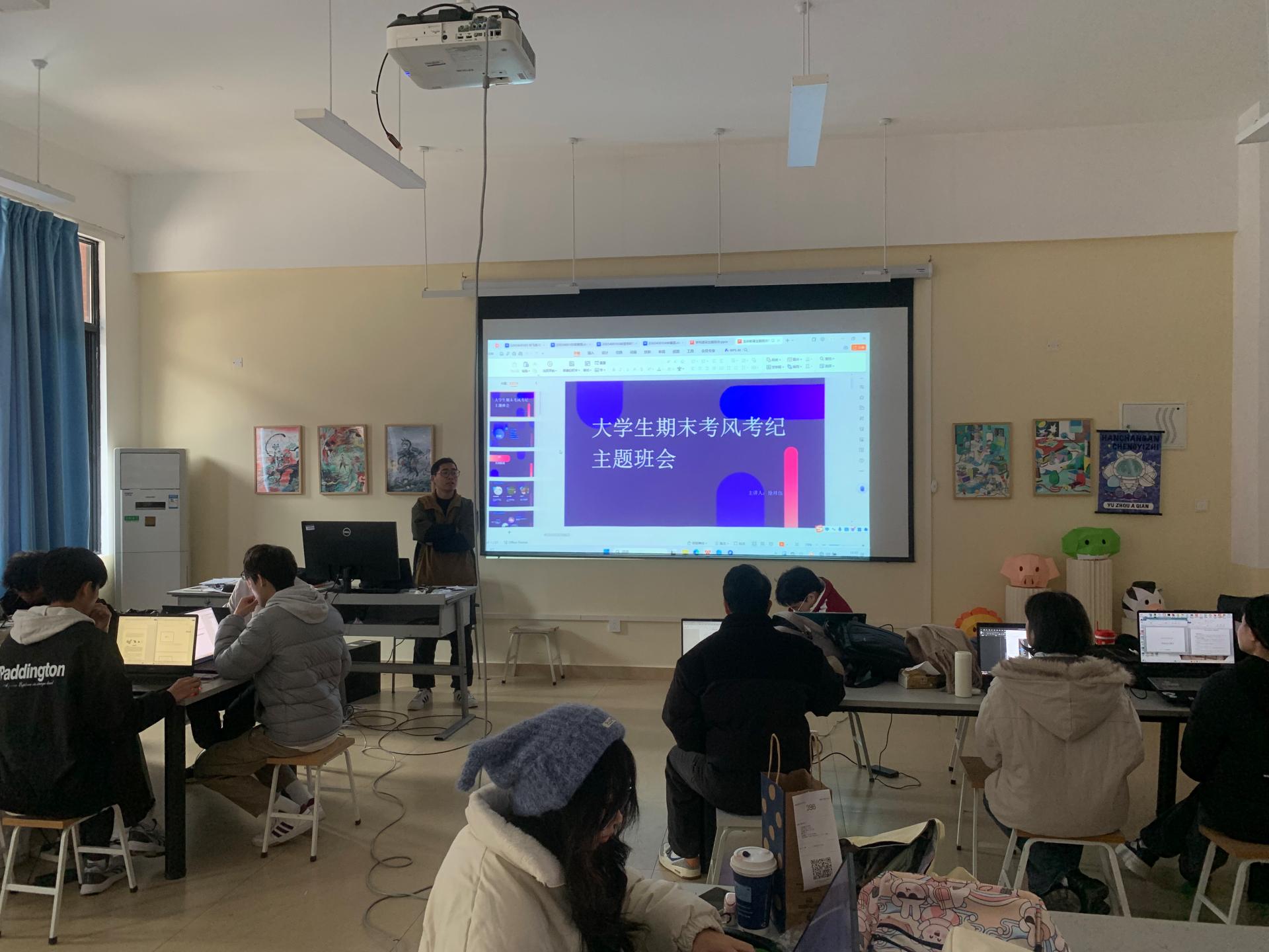 徐祥伍老师首先强调了诚信考试的重要性,随后通过案例分析,让同学们深刻认识到作弊行为的严重后果。在班会过程中,同学们积极参与讨论,分享了各自的备考经验和诚信考试的心得。班会还邀请了环境设计教研室主任蒙敏老师,就考试规则和纪律进行了详细解读,确保每位同学都能明确考试要求。
