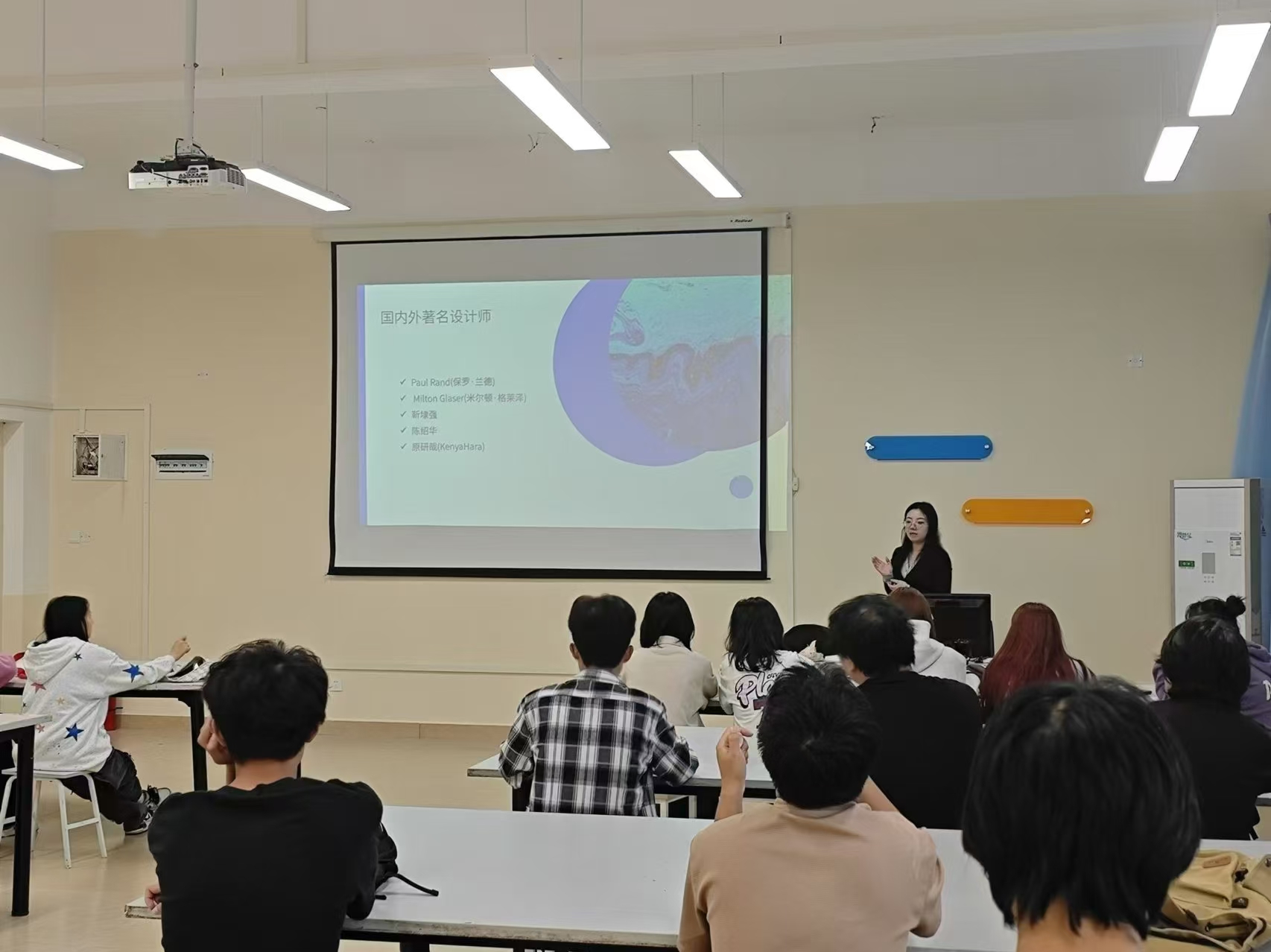 在班会上,班主任阳单丹向同学们介绍了视觉传达设计领域的著名设计师,包括国内外杰出的设计师保罗·兰德、米尔顿·格莱泽、靳埭强、陈绍华、原研哉等,让同学们领略了大师们的风采和创意。播放了一段关于著名设计师靳埭强的精彩访谈。靳埭强先生作为华语设计界的领军人物,以其独特的设计理念、深厚的文化底蕴和卓越的艺术成就,深受全球设计界的尊敬和推崇。在这段访谈中,靳埭强先生分享了自己在视觉传达设计领域的探索历程和心路历程。他谈到了自己如何从中国传统文化中汲取灵感,将传统元素与现代设计巧妙融合,创造出具有鲜明个性和深厚文化内涵的设计作品。同时,他还分享了自己对于设计创新的独到见解,强调设计师要勇于尝试、敢于突破,不断挑战自己的极限。借此机会,引导同学们深入思考设计师的责任与使命,鼓励大家要学习靳埭强先生的设计精神,不仅要掌握扎实的设计技能,更要培养敏锐的审美眼光和深刻的文化理解力,为创作出更具影响力和感染力的设计作品而努力。