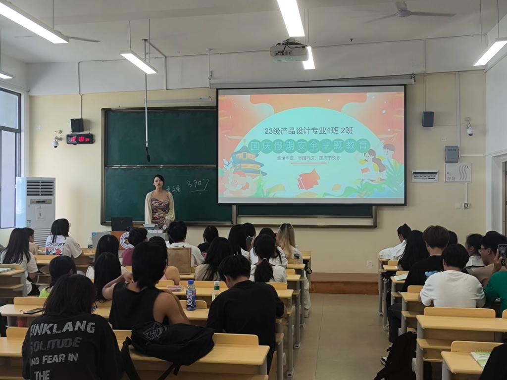 创意设计学院23级产品设计专业9月27日在C513开展“盛世华诞,举国同庆”国庆假期安全主题班会。由班主任严若瑾老师主讲,23级产品设计专业1班和2班全体学生参加。
