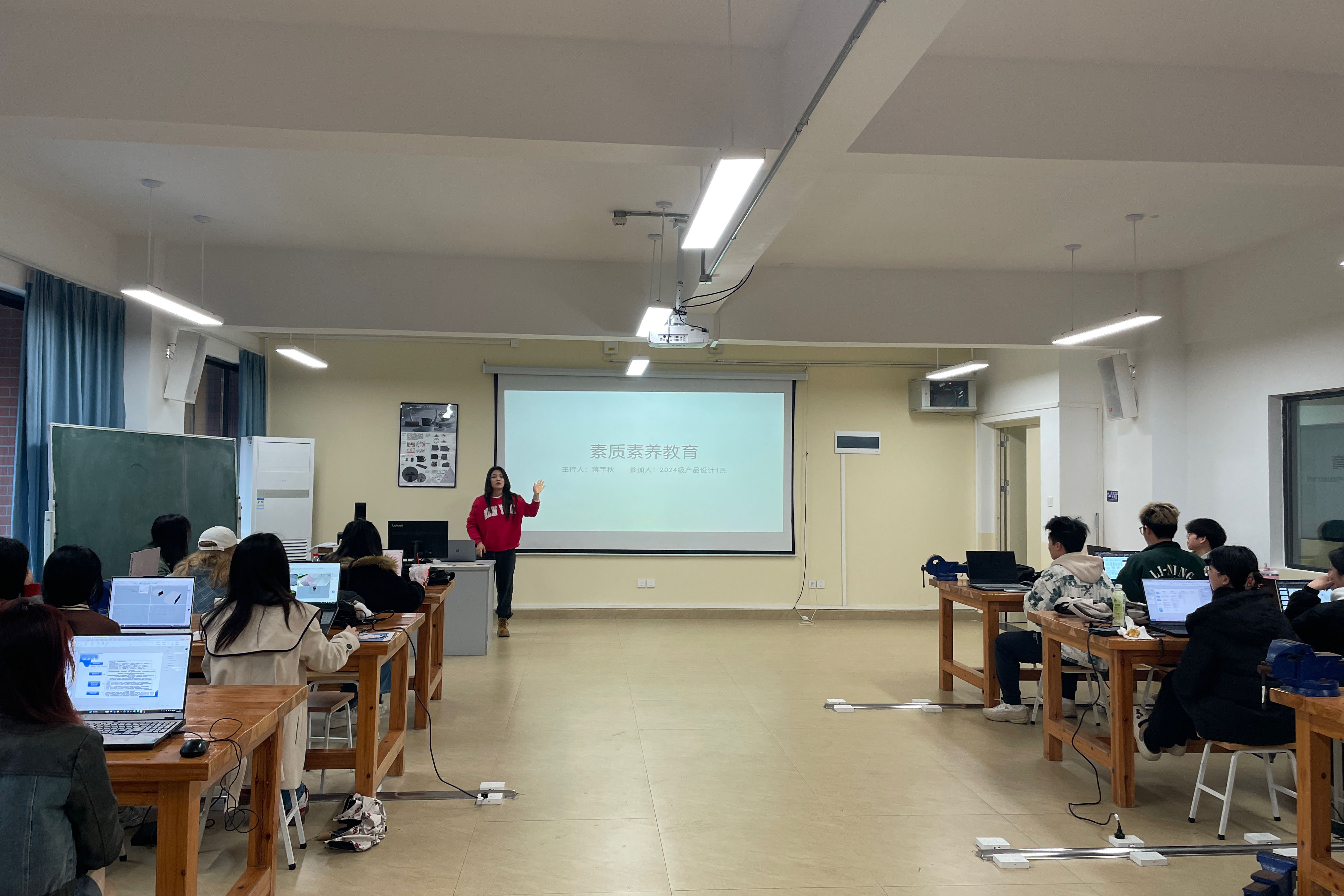 2026年3月24日,2024级产品设计1班在守正楼G202教室成功举办了一场以“素质素养教育”为主题的班会,活动由班主任蒋宇秋主持,全班同学积极参与。
