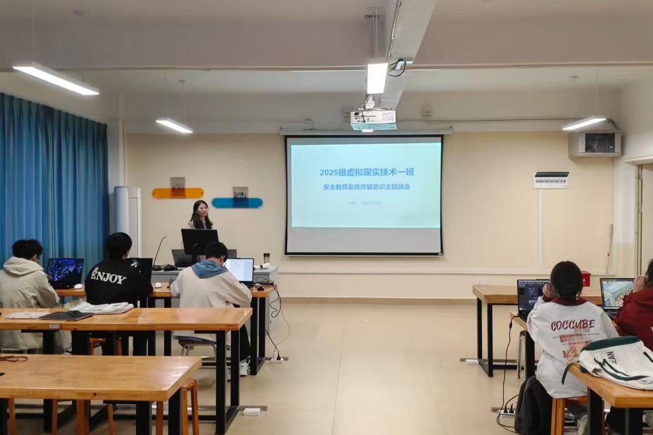 为筑牢校园安全防线,提升学生安全防范与反诈意识,3月31日,2025级虚拟现实技术1班于守正楼G310召开“安全教育及防诈骗意识”主题班会,班主任马庚燕老师主持会议,全班同学全员参与。