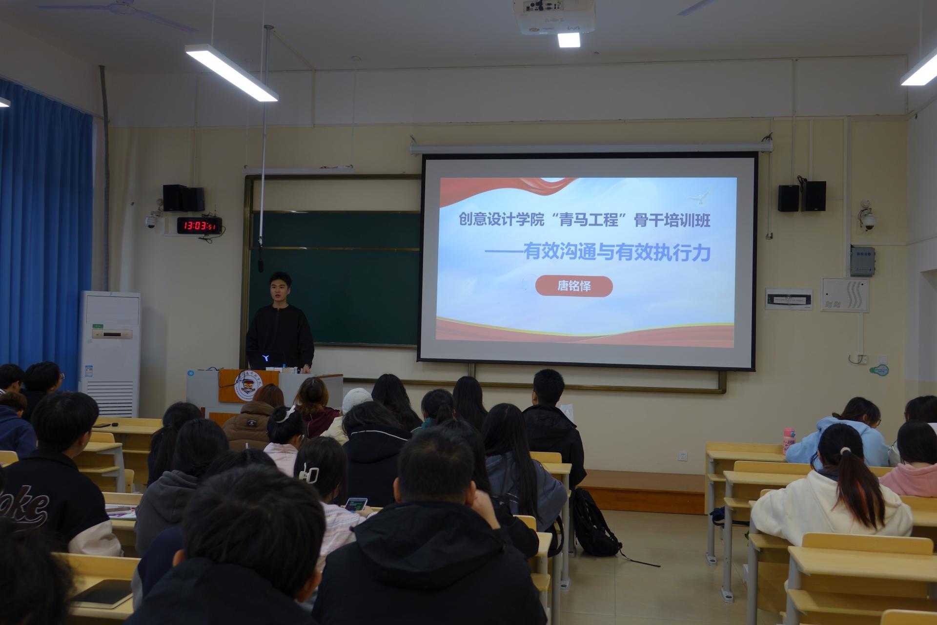 为增强青年团干的团队协作能力,提升沟通与执行的能力水平,11月28日,创意设计学院在D111教室举办“青马工程”骨干培训班第二讲——有效沟通与有效执行力,由2023级辅导员唐铭怿主讲,全体团员骨干参加。