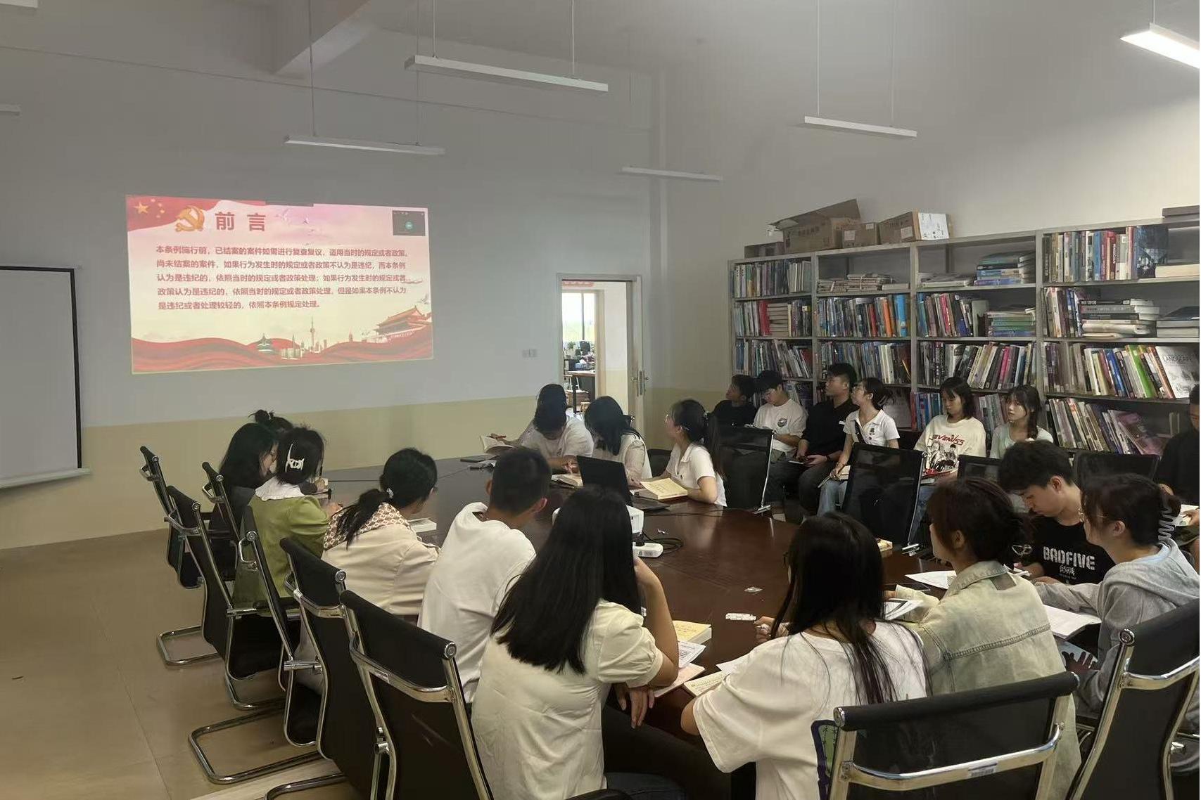 6月24日,创意设计学院第二学生党支部在德远楼E504教室召开学习党纪法规主题党课。本次党课由党支部书记刘思主持,支部全体党员参与,旨在深入学习《中国共产党纪律处分条例》,提升党员对党纪的深刻理解。