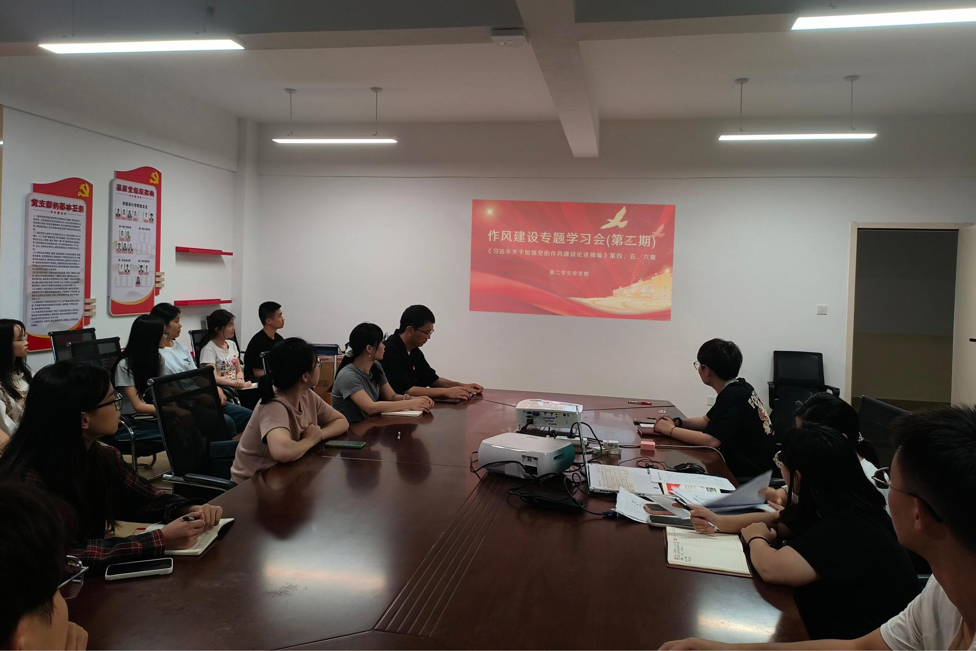 5月12日,创意设计学院第二学生党支部在守正楼G517召开专题学习会。会议由党支部书记刘思主持,支部全体党员参与,重点学习《习近平关于加强党的作风建设论述摘编》第四、五、六章内容及“四个一”相关案例汇编。