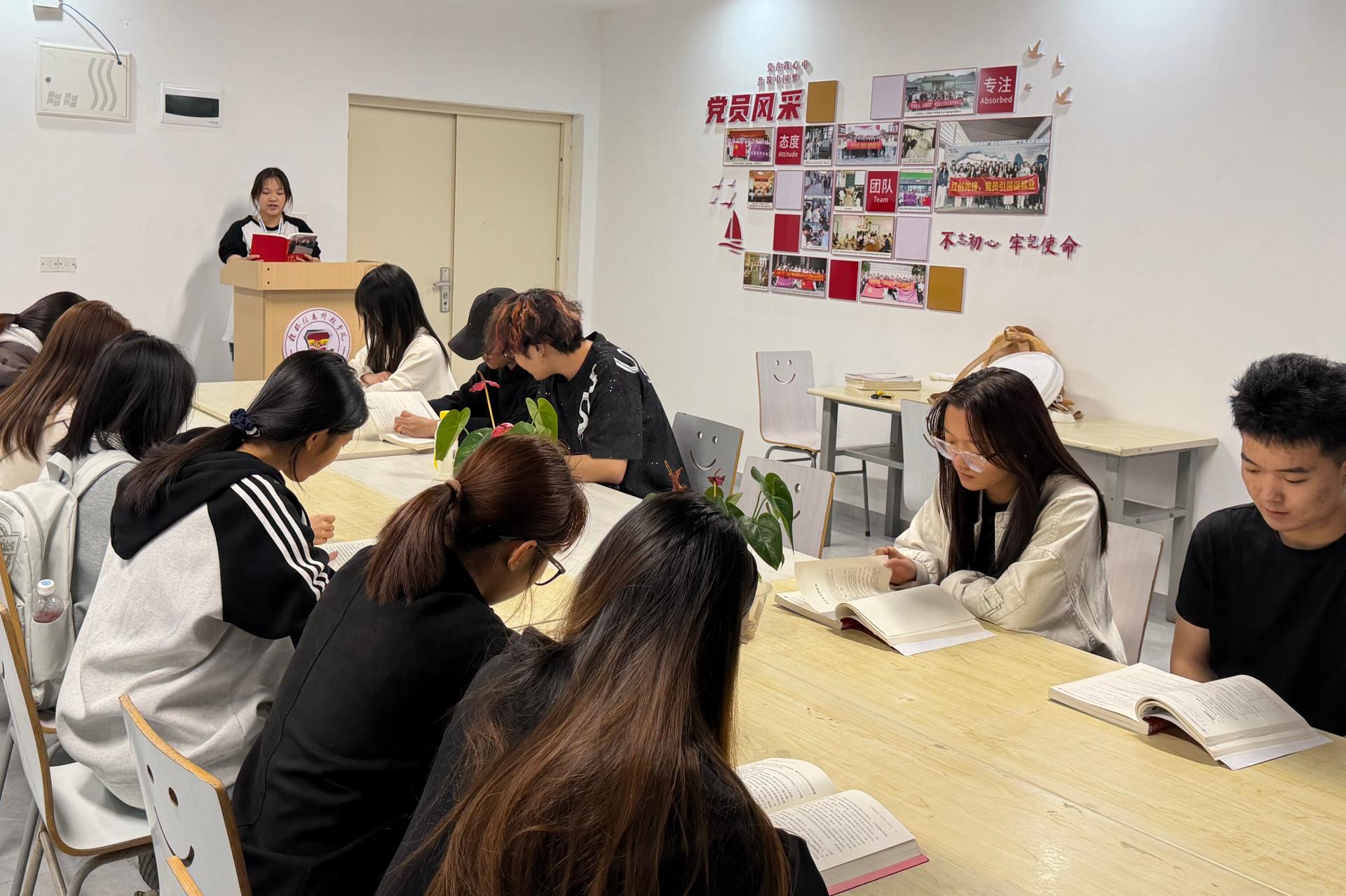 活动伊始,李文敏老师领学习近平总书记关于“青年要自找苦吃”的论述,她指出:“书中习近平总书记三十余次与大学生面对面交流的故事,揭示了‘基层是青年成长的沃土’这一深刻命题。设计学子更需将创意扎进泥土,用专业技能唤醒沉睡的乡土记忆。”在分享环节,入党积极分子唐宇璇以《林海雪原》中杨子荣“翻开《林海雪原》,杨子荣‘越是艰险越向前’的革命豪情深深震撼了我。他孤身深入匪巢的胆识,正如习近平总书记鼓励青年‘在扎根基层中练就过硬本领’的期许。今年暑期,我跟随麦穗文光非遗传承团走进山西灵丘西福田村,将这份勇气化为守护乡土文脉的行动。”