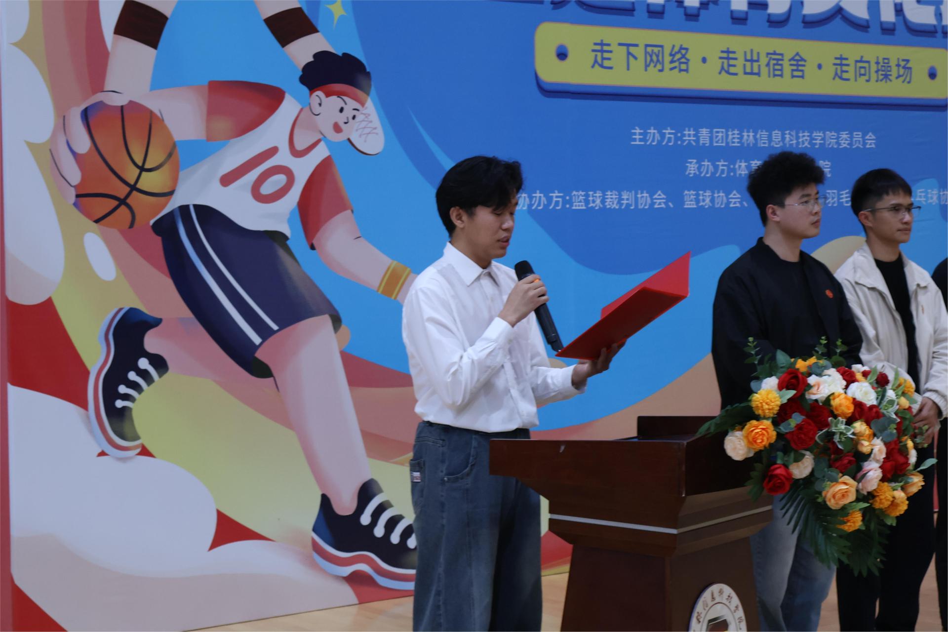 开幕式在拉拉队带来的精彩表演中拉开帷幕,她们以灵动且充满力量的舞姿,演绎着青春的活力与激情。随后,宣誓人代表全体运动员宣誓“五四杯”的赛事精神,号召全体运动员以昂扬的斗志赛出水平、赛出风格,充分展现新时代青年学子的良好风貌。现场气氛热烈非凡,运动的激情在此刻点燃。
