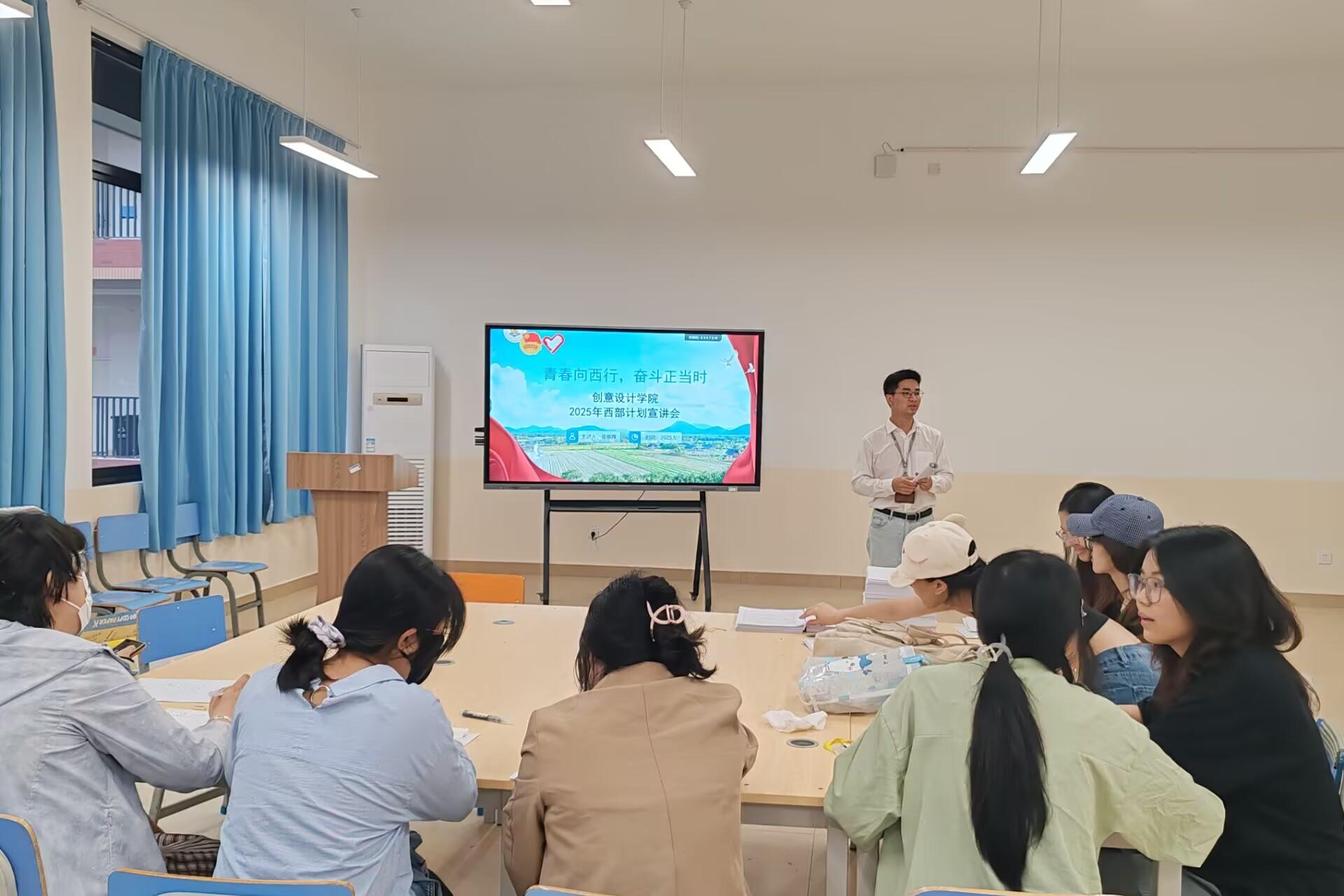 为鼓励毕业生积极投身西部建设,助力国家发展,创意设计学院于5月7日在博文楼F201、F203召开2025届毕业生西部计划宣讲会。学院团委副书记黄子恒、毕业班辅导员及全体毕业班同学参加宣讲会。会上,学院团委副书记黄子恒、毕业班辅导员韦宛彤、翟基辉分别向毕业班同学详细解读了西部计划的政策内容,包括服务地区、岗位类型、补贴待遇及后续发展支持等,强调参与西部计划的志愿者可享受考研加分、公务员定向招录、学费代偿等优惠...