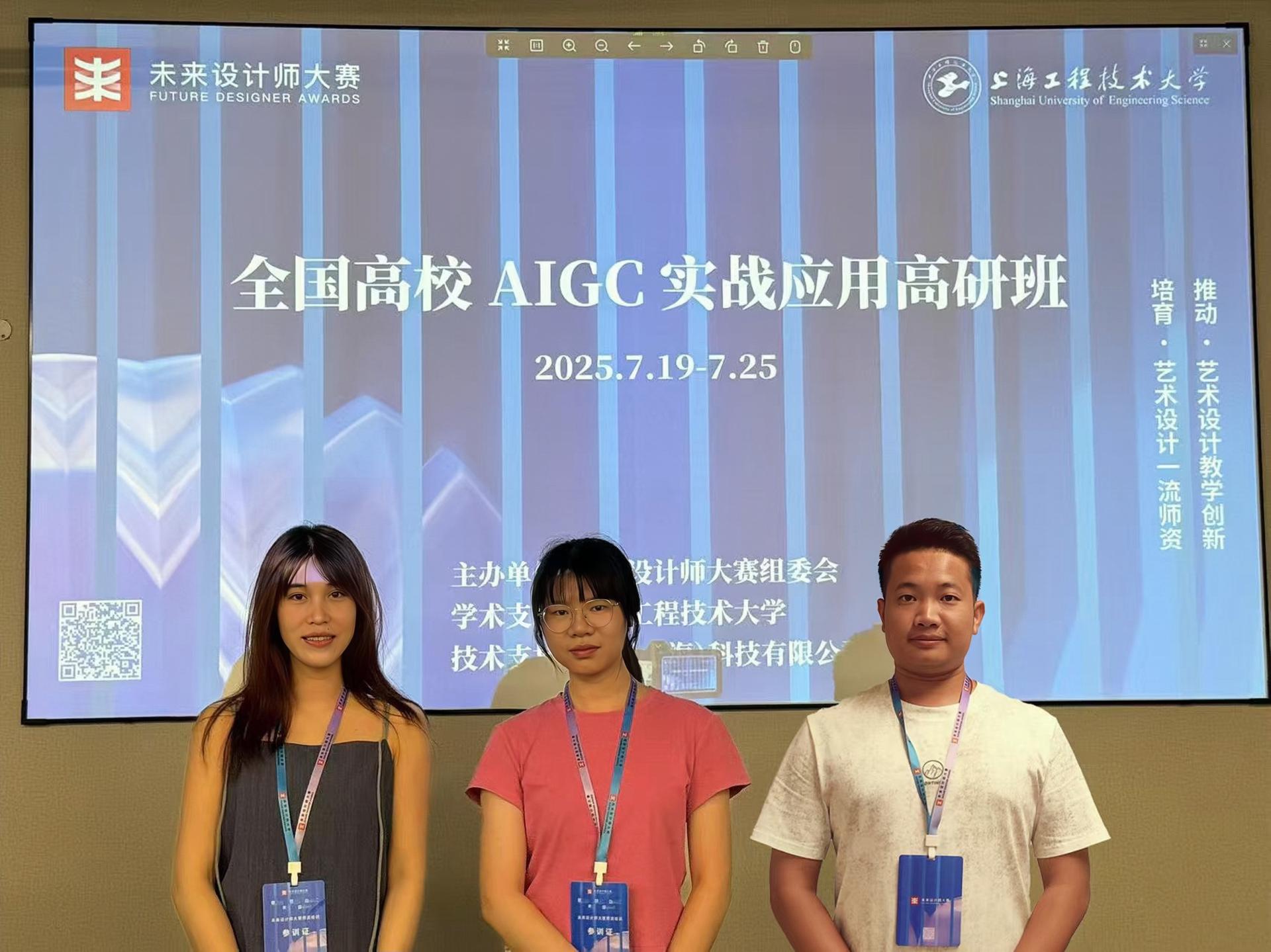 2025年7月19日至25日,创意设计学院动画、虚拟现实技术教研室的韦红毅、粟宁团、胡勇文三位老师参加了由未来设计师大赛组委会在上海工程技术大学举办的全国高校AIGC实战应用高研班(上海站)的培训。此次培训旨在助力高校教师提升AIGC实战技能,增强竞赛指导能力,进而推动教学创新。随着人工智能技术的飞速发展,AIGC(人工智能生成内容)在教育领域的应用日益广泛。本次高研班课程目标明确,涵盖全面认知AIGC的发展历程与多元...