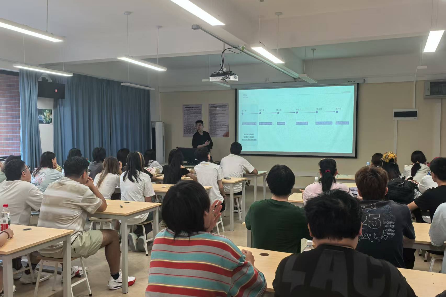 为加强师资队伍建设,提升教学质量,助力新任教师快速成长,9月3日下午,创意学院数字媒体艺术教研室组织开展了新任教师试讲活动。教研室主任兰珂老师主持活动,教研室全体教师参与评课指导。在《数字构成》课程中,李琳琳老师以“数字技术如何重构视觉艺术”为切入点,通过动态案例解析几何抽象、分形艺术等数字美学原理。胡修鑫与华津霆老师以团队协作形式讲授《创意设计思维》,通过“问题拆解-头脑风暴-原型测试”三阶段模...
