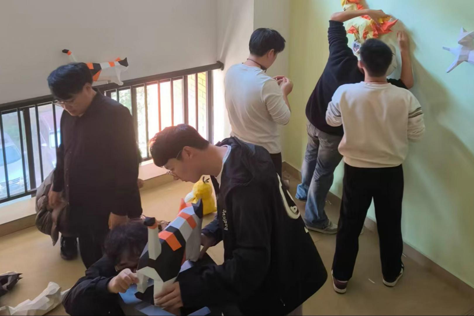 11月14日,创意设计学院动画教研室教师们完成了教学楼楼道装饰活动。当课堂作品跃上墙壁,校园楼道也能成为专业实践的生动课堂。学生的创意纸模作品精心布置在教学楼楼道内,这些作品不仅展示了学生的创意思维能力、专业实践能力,更是理论与实践教学的有机结合。装饰过程中,教师团队严格把控布局规划与细节落实,根据楼道空间结构精心确定每一件纸模作品的安装位置,确保整体视觉效果协调统一。经过有序布置,原本素白的墙面...