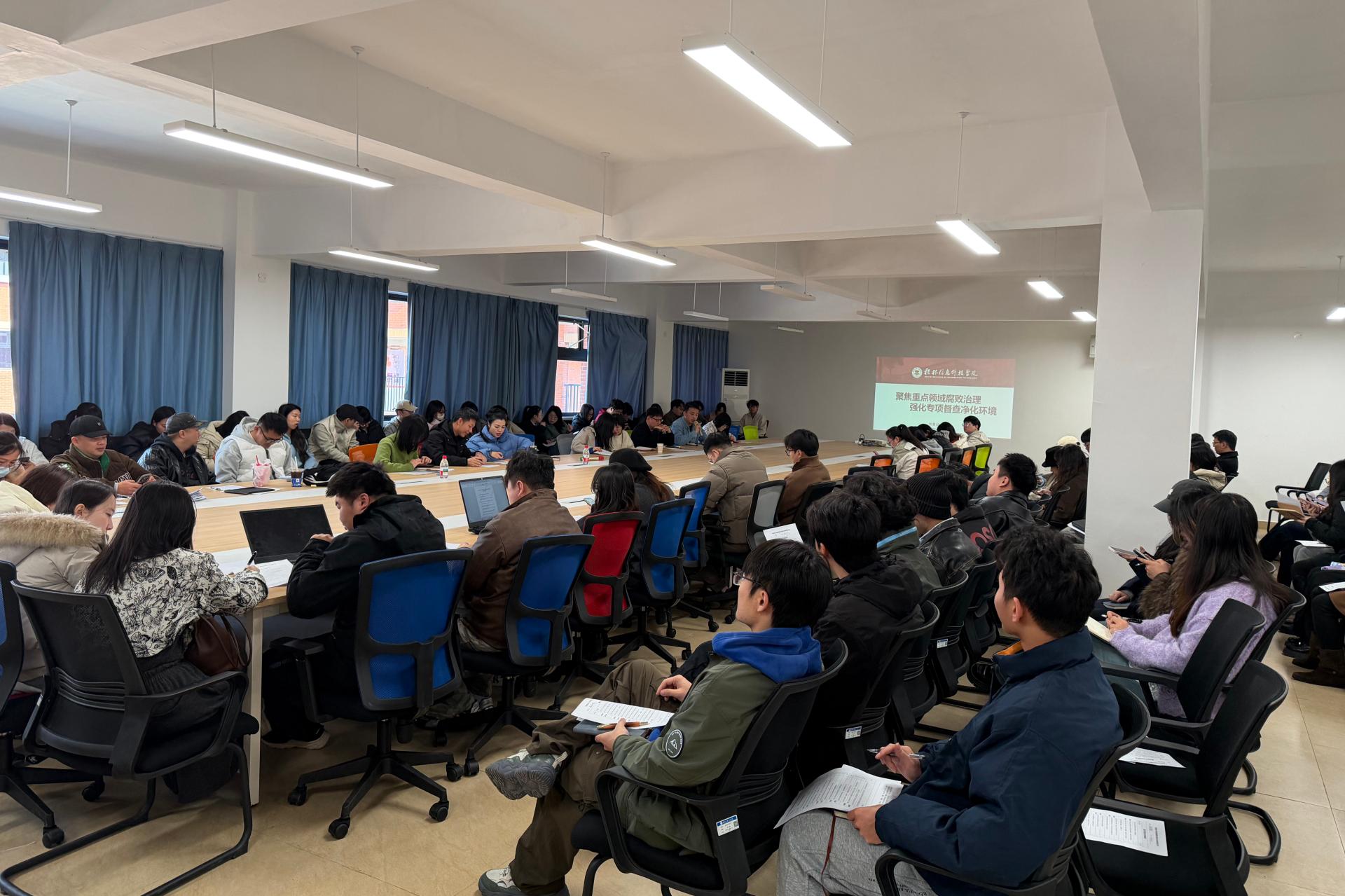 12月19日,创意设计学院召开重点领域腐败治理专项工作会议,围绕基本建设、职称评优、学术造假、科研经费等关键环节开展全面自查自纠。会上,全体教职工认真填写《创意设计学院教师廉洁风险点自我检查登记表》,从教学活动、科研活动、学术交流、师德师风等方面进行深入自查,全面排查可能存在的廉洁风险点。此次专项治理工作旨在进一步规范学院管理,营造风清气正的育人环境。在自查过程中,学院重点检查了科研经费使用是否规...