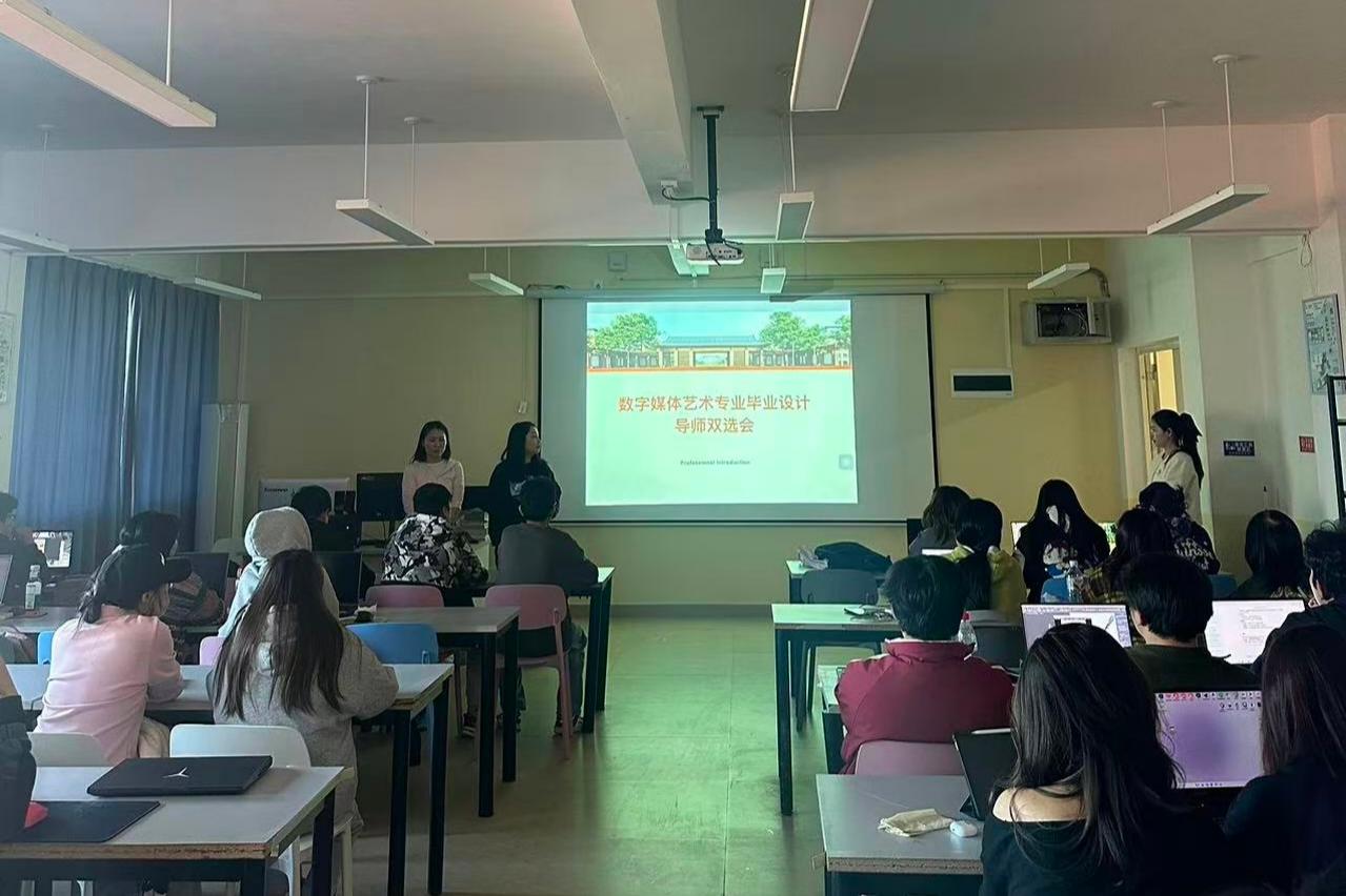 为助力2022级学生高效推进毕业设计,数字媒体艺术专业于近日在G410举办毕业设计专题指导会议。会议聚焦“方向解析”与“导师双选”两大核心环节。在毕设方向选题解析环节,专业负责人兰珂老师结合行业趋势与历年优秀案例,从“技术融合”“文化赋能”“用户体验”三个维度拆解毕业设计制作方向。她强调:“数字媒体艺术的核心是‘技术为骨,艺术为魂’,建议同学们在选题中融入元宇宙、AIGC等新技术,同时关注非遗数字化、社会...