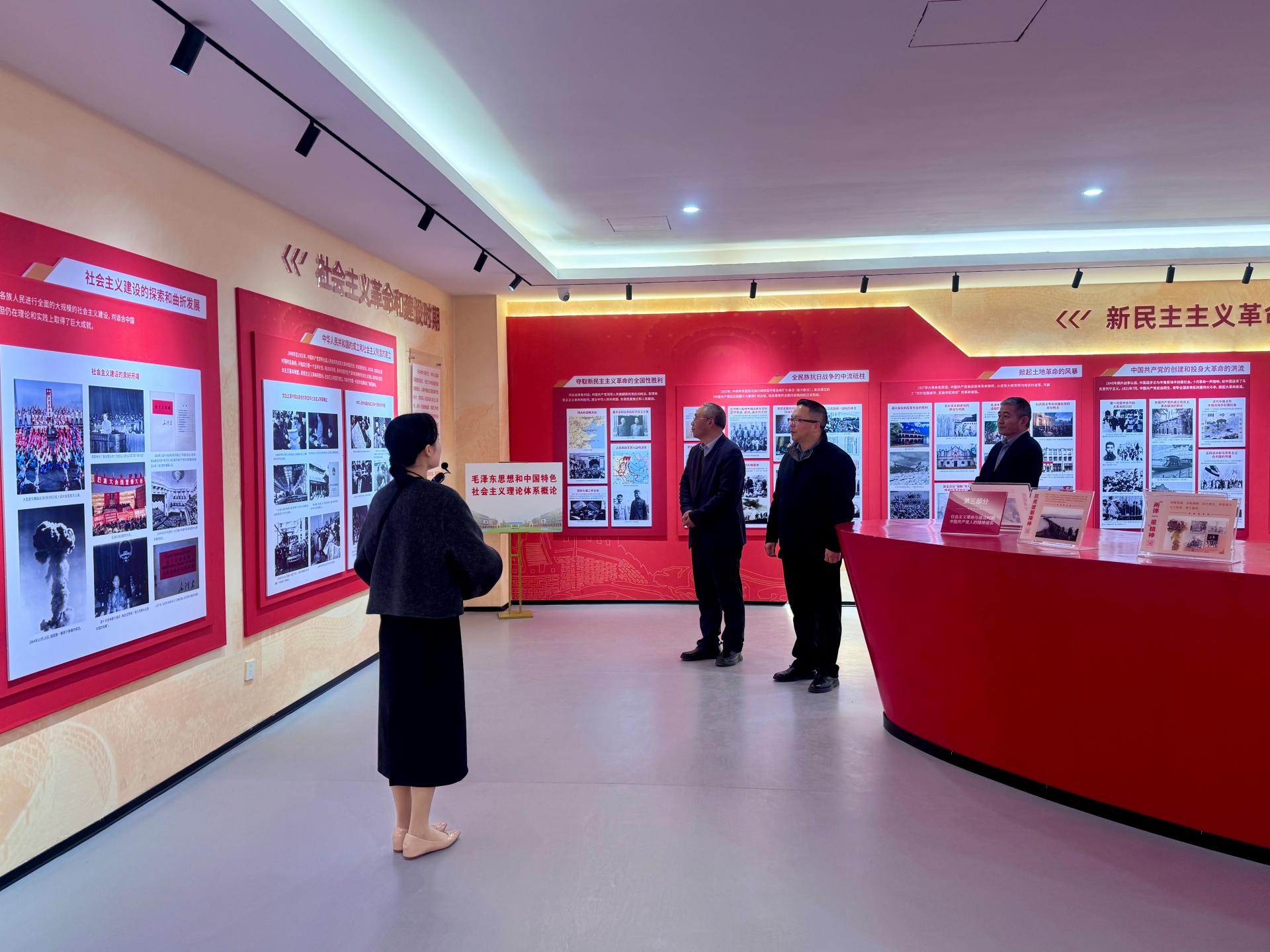 宣讲会结束后,孟宪平教授受邀对学校思政文化阵地建设情况进行实地指导与参观考察,先后走进学校思政馆、马克思主义学院。在思政馆内,孟教授逐一参观各主题展区,认真聆听讲解,对场馆深度挖掘红色基因、创新打造沉浸式育人场景的实践举措给予赞赏。随后,在马克思主义学院,孟教授与学院教师代表展开亲切交流,详细听取了学院在学科体系建设、师资团队管理、理论研究等方面的工作汇报。孟教授指出,思政馆与马克思主义学院作为校园思想文化建设的重要载体,共同构筑起扎实稳固、生动活跃的校园思想文化生态,为学校深入落实立德树人根本任务提供了强有力的支撑。