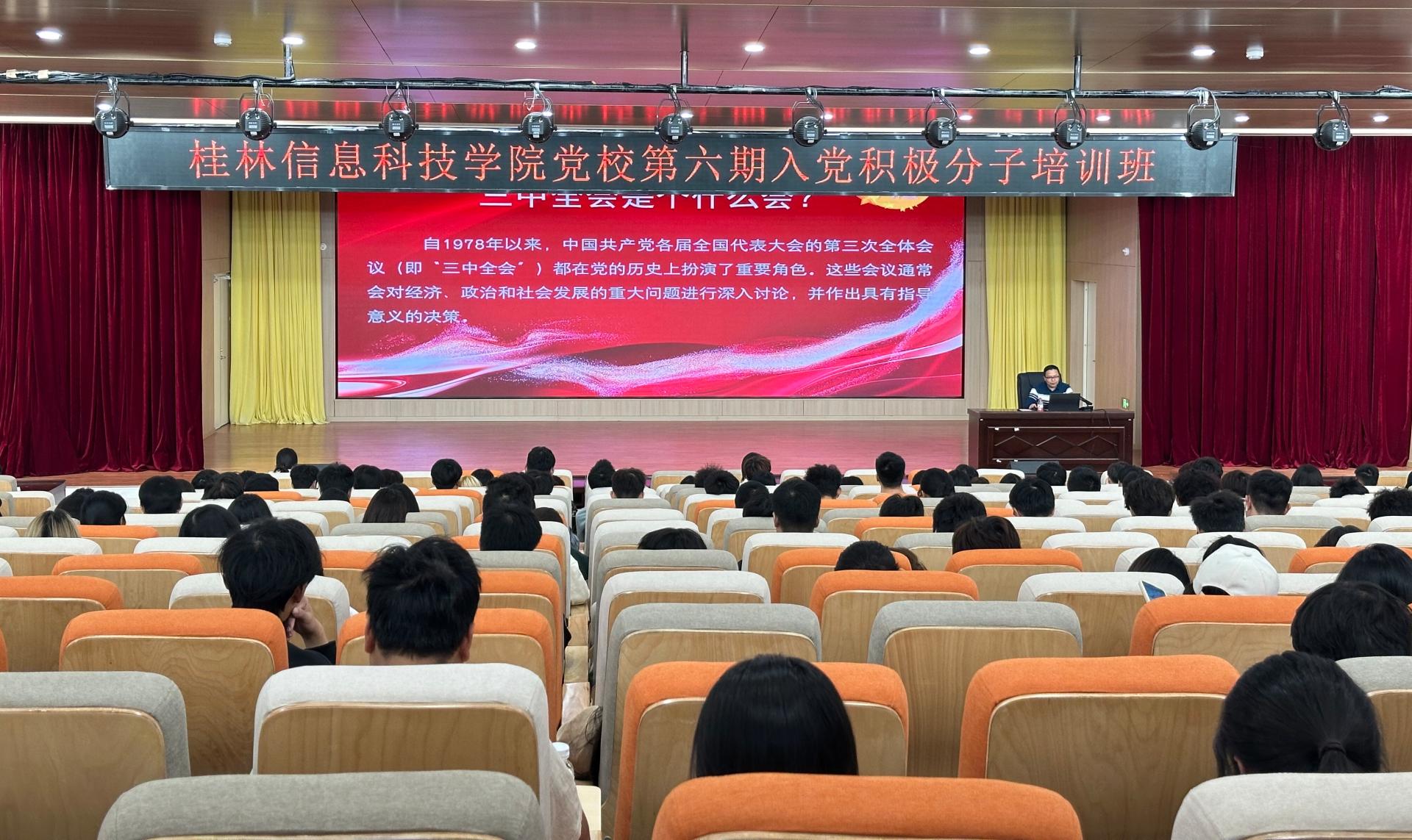 为学习贯彻党的二十届三中全会精神,提升入党积极分子的政治素养与理论水平,11月7日,学校党委书记甘勇在F107报告厅为党校入党积极分子讲授《学习贯彻党的二十届三中全会精神新时代大学生的使命和担当》专题党课,全体培训班学员参加学习。