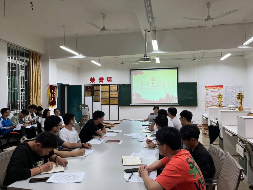 5月31日,机电工程学院学生党支部组织学习《中国共产党统一战线工作条例》,机电工程学院第四学生党支部书记王书蕊同志主讲,学生党支部全体党员参加学习。