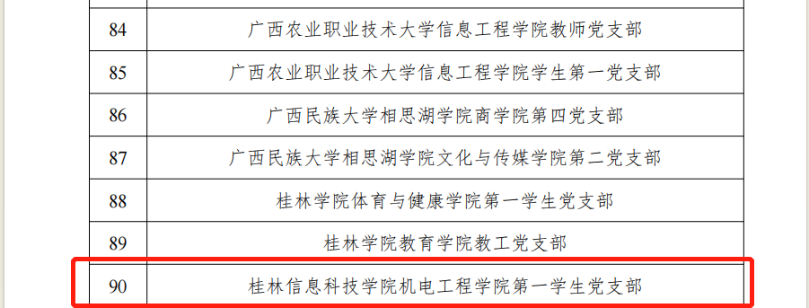 近日,自治区党委教育工委公布了第二批新时代广西高校党建示范创建和质量创优工作培育创建单位名单。beat365信息工程学院第三学生党支部、机电工程学院第一学生党支部入选第二批新时代广西高校党建工作样板支部培育创建单位。