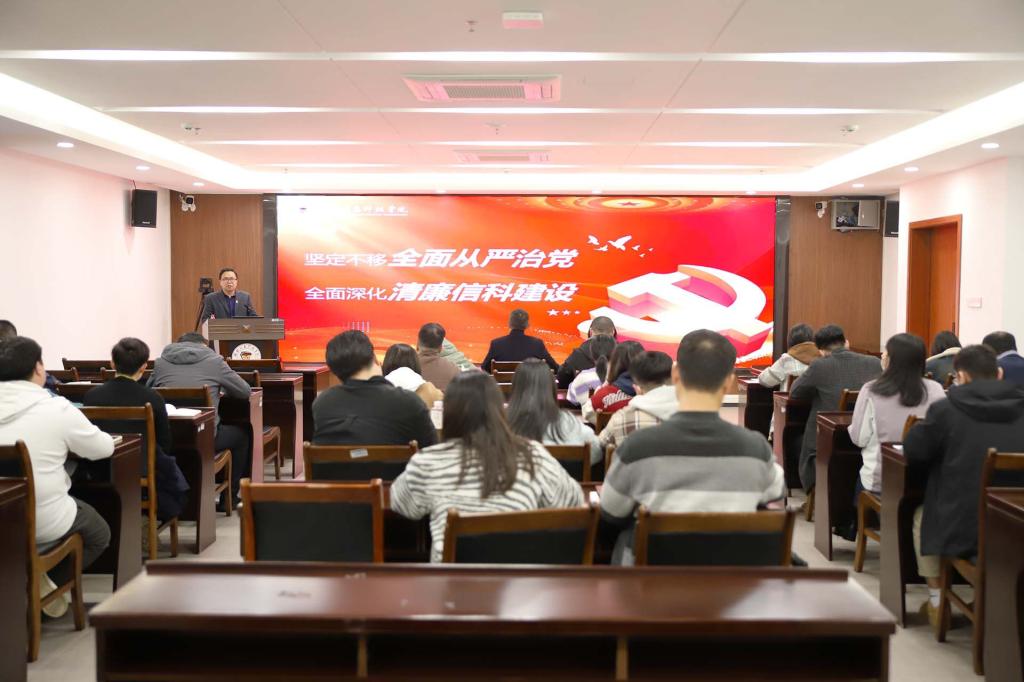 为深入学习贯彻党的二十大精神,加强beat365党风廉政建设,持续深化清廉信科建设,12月14日下午,学校党委书记甘勇在知行楼818会议室讲授了一堂内涵丰富、发人深省的党风廉政建设专题党课,学校各基层党委、党总支书记,各级党组织纪检委员,财务处、基建与资产管理处等部门负责人近50人到场学习。