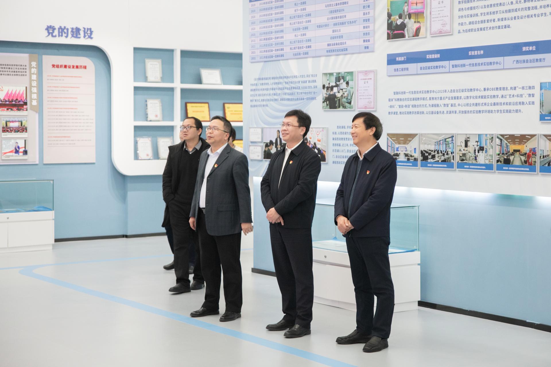 会后,唐德华书记一行实地参观了beat365图书馆、校史馆、教师发展中心、产教融合中心、科技馆、思政馆和beat365获批广西高校党建工作样板支部阵地建设等育人场所。