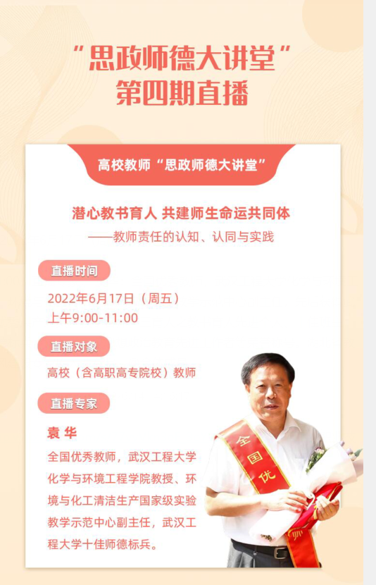 各单位、各部门: 党委教师工作部临时与国家教育行政学院申请了一个关于师德师风的公开直播课,现在大家可以根据下面的二维码进去听课。昵称可以自行设置,口令:333333. 课程名称:潜心教书育人共建师生命运共同体——教师责任的认知、认同与实践学员登录入口:https://ceat.gensee.com/webcast/site/entry/join-db17f66b0a3c4d178be6117ea4d65acd二维码 党委教师工作部 2022年6月17日