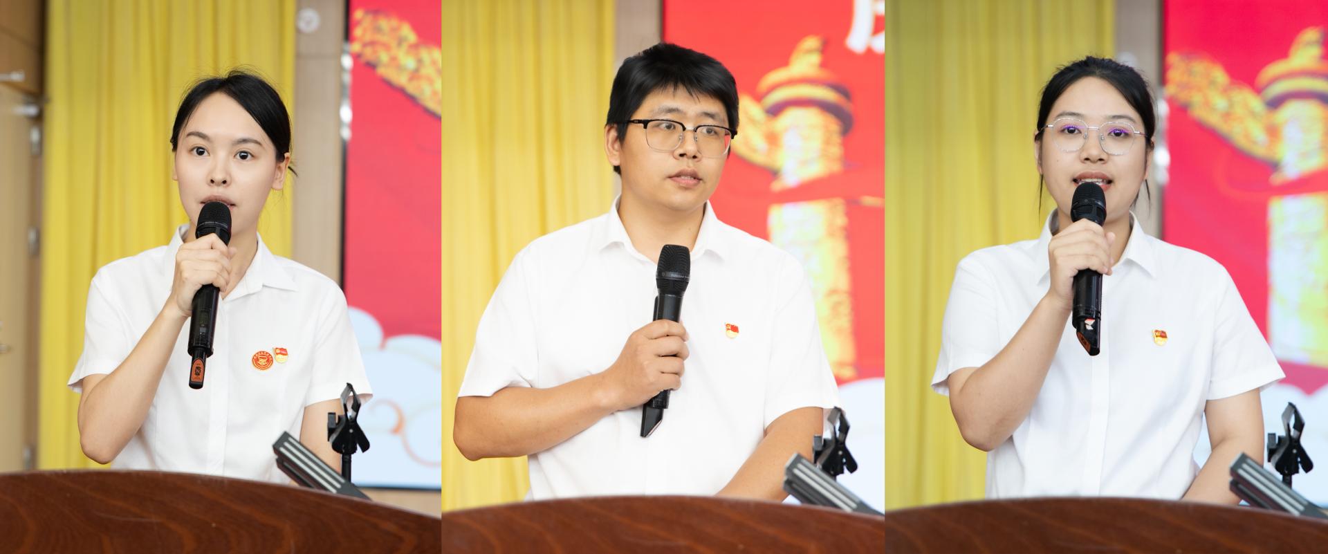 会上,电子工程学院第三学生党支部书记赵玉婷,创新创业学院黄鹏,党委宣传部莫莉三位同志分别作交流发言,交流了基层党建工作的先进做法和履行党员初心使命的鲜活案例,展现了优秀共产党员的坚定信念和担当作为。