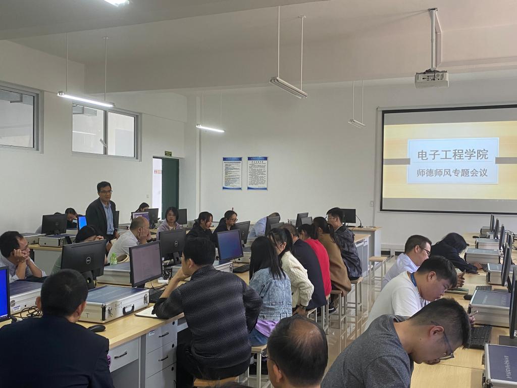 10月28日,电子工程学院在52207实验室召开师德师风专题会议。会议由学院院长韩桂明主持,学院全体教职工参加会议。