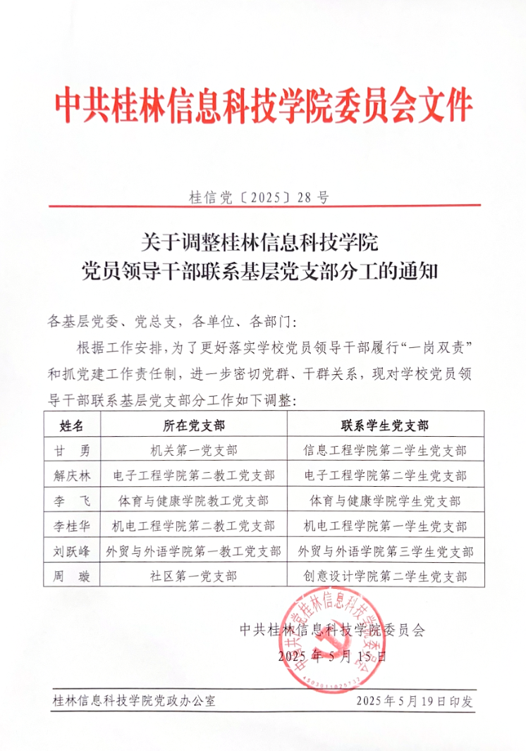 关于调整beat365官方网站党员领导干部联系基层党支部分工的通知