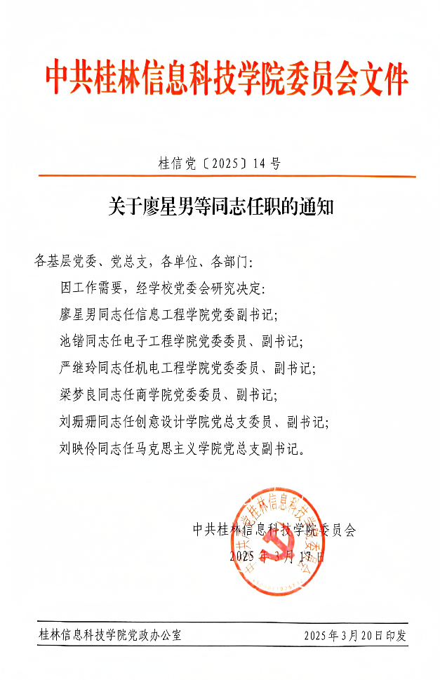 关于廖星男等同志任职的通知
