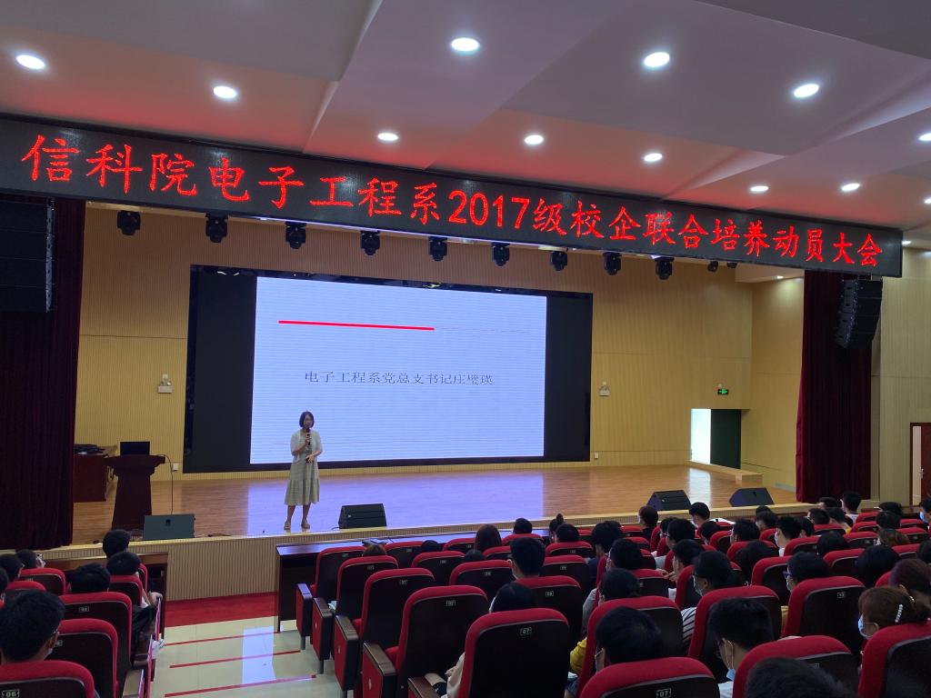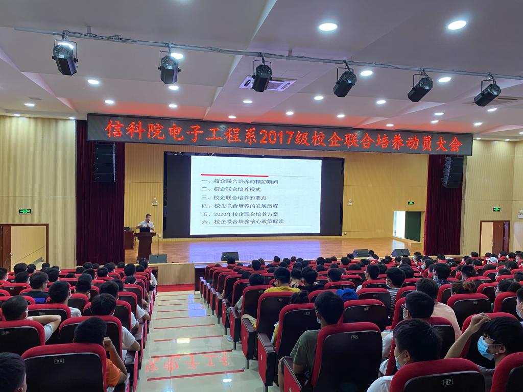 6月29日中午,电子工程系召开2020年校企联合培养动员大会。系副主任韩桂明、党总支书记庄璧瑛、2017级辅导员覃瑶及17级全体同学参加了大会。