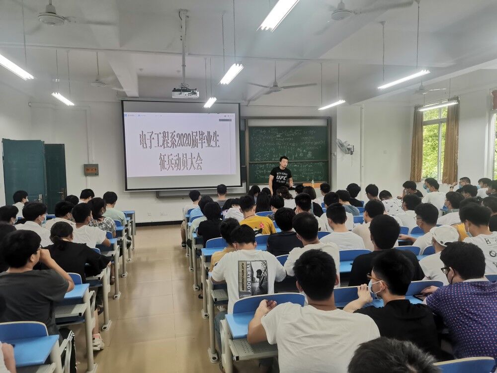 为深入贯彻落实大学生征兵工作,进一步加强对学生应征入伍政策的宣传力度。6月1日下午,电子工程系在31211开展2020届毕业生征兵动员大会。会议由系2016级辅导员范恒祯主持会议,系2016级全体在校学生参加。