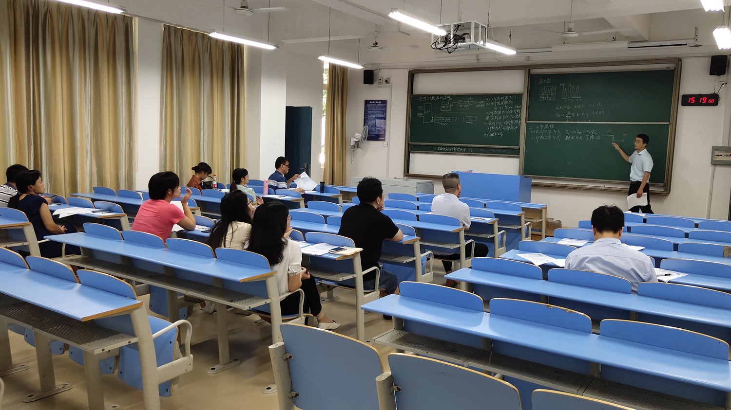 7月27日下午,电子工程系在31104教室开展第五次专任教师招聘试讲工作,会议由系办事务助理岳庆英主持,学院教学督导主任凌惜勤、系副主任韩桂明、副主任韩剑、各教研室主任以及相关课程的专任教师代表共9人担任评委。
